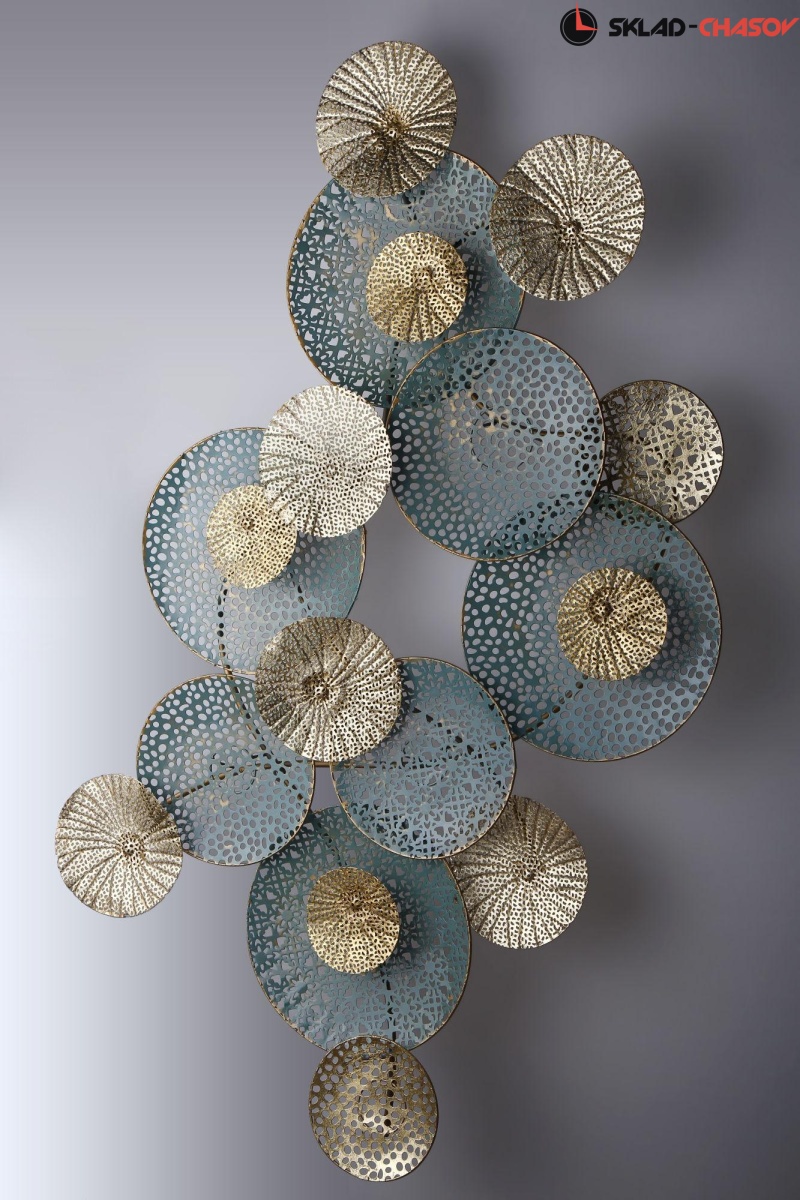 Декоративное настенное панно с объемными элементами, изготовлено из кованого металла. Возможно вертикальное или горизонтальное размещение. Вес панно 1,6 кг
