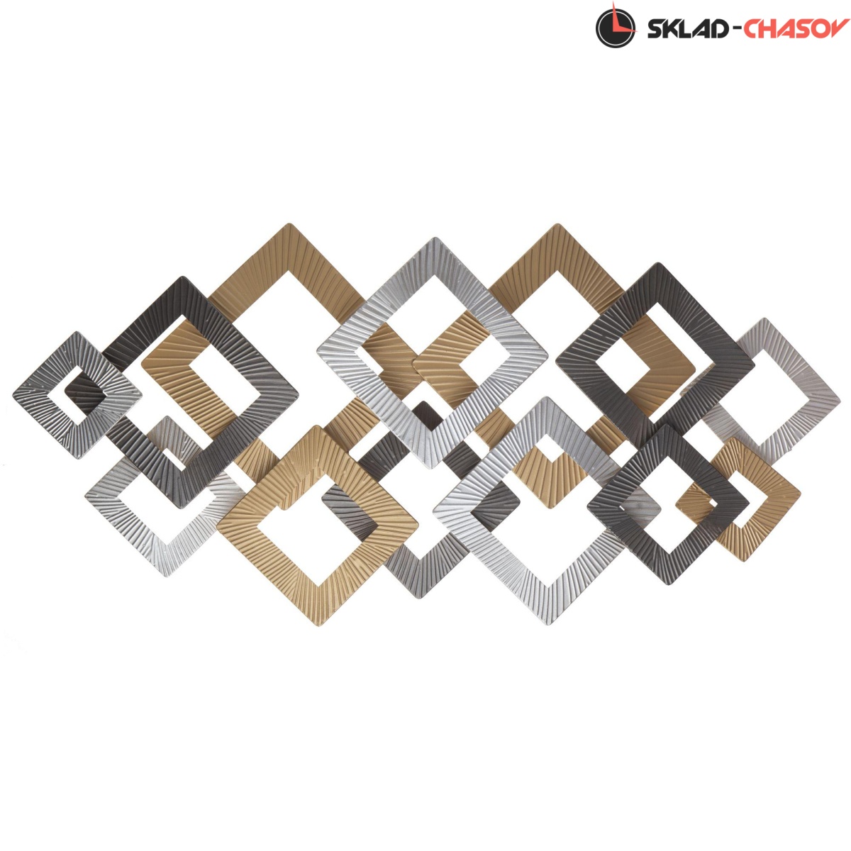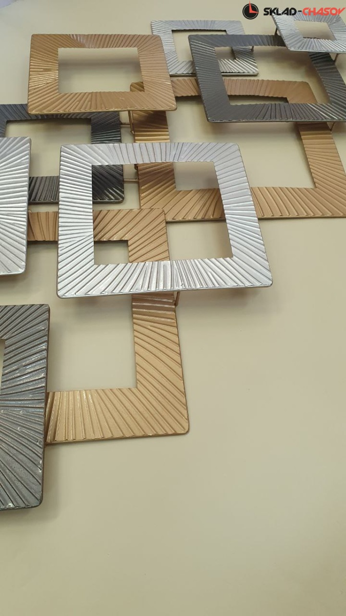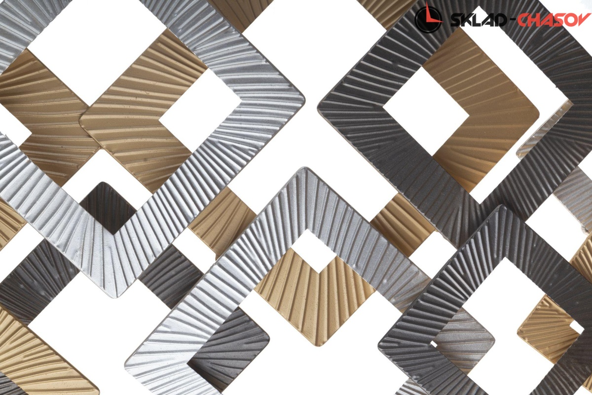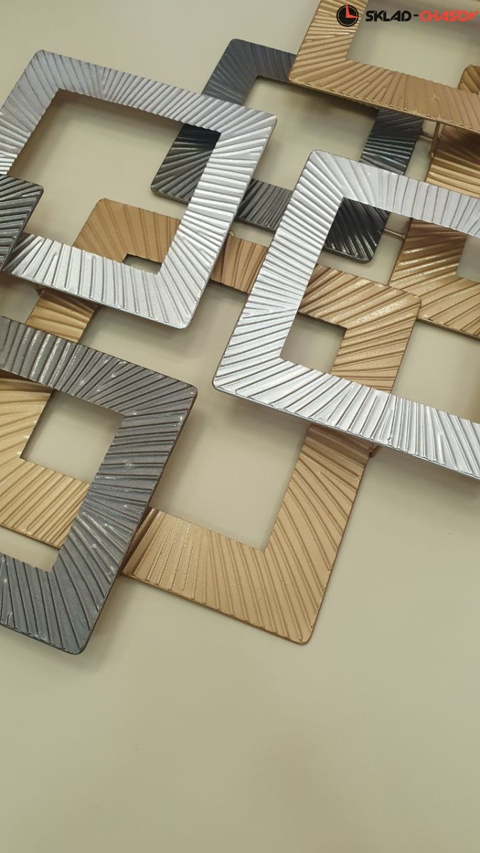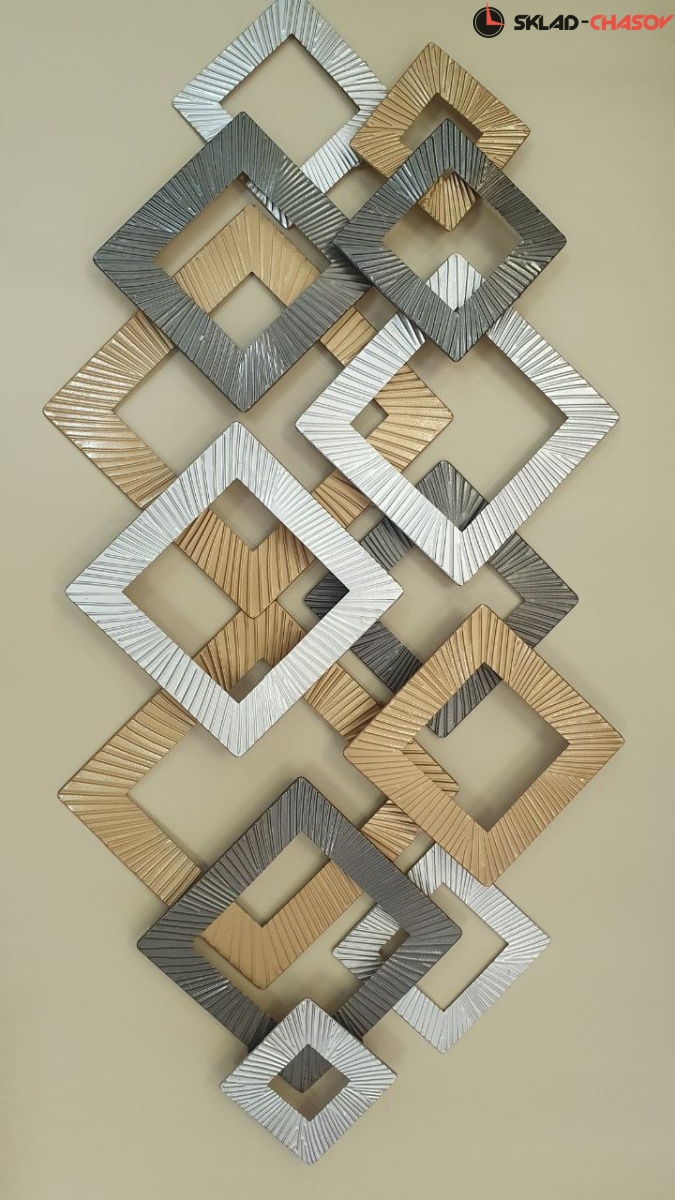 Декоративное металлическое настенное панно с объемными элементами и геометрическим мотивом.