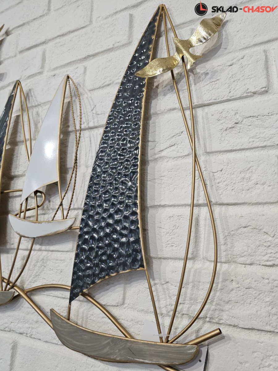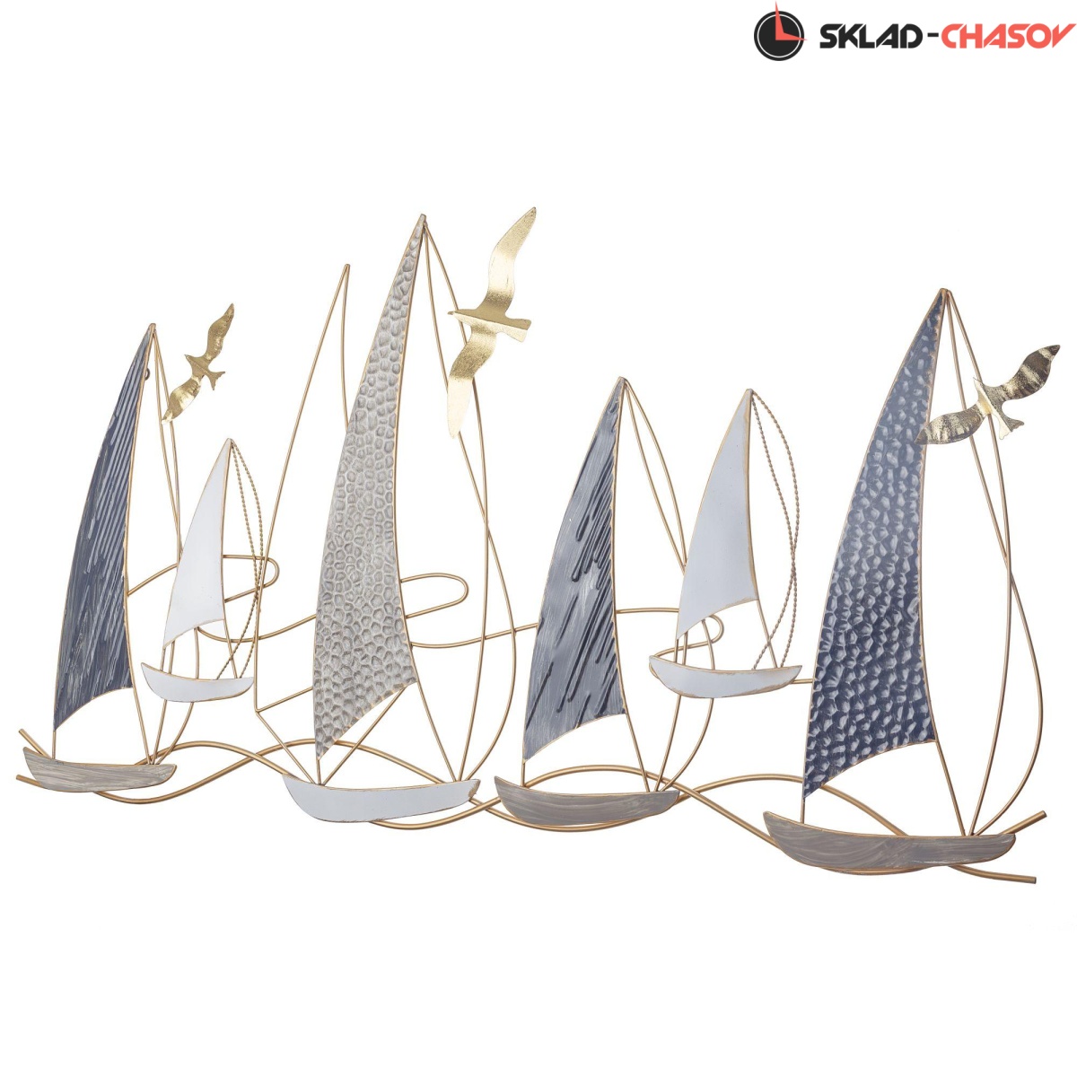 Декоративное металлическое настенное панно с объемными элементами и морским мотивом.
