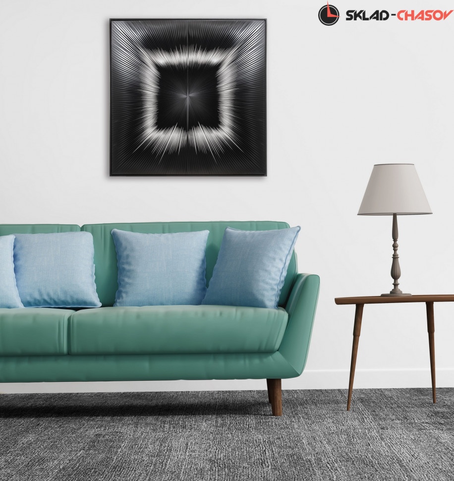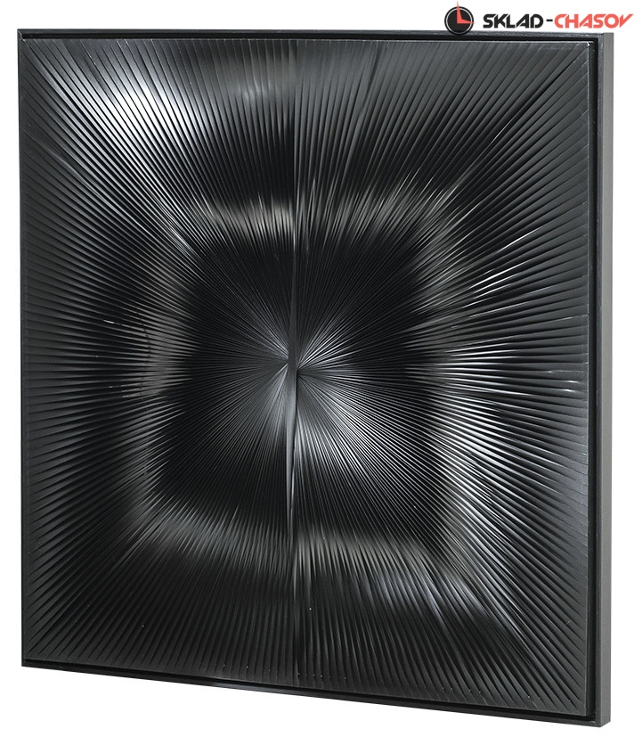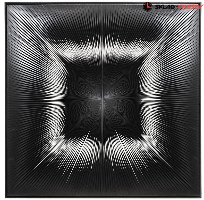 Панно в современном стиле "Иллюзия квадрат". Панно заключено в чёрную шпонированную деревянную раму, с внешней стороны покрытую стеклом. Размеры: высота 90 см, ширина 90 см, глубина 5 см. Артикул: 30393.