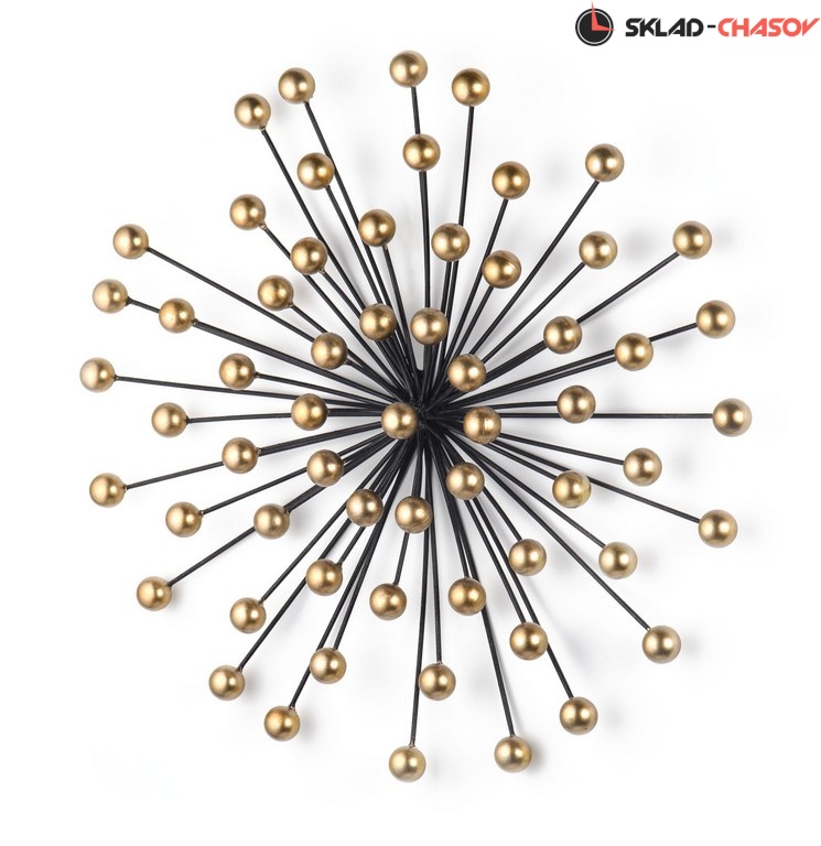 Объемное настенное панно. Кованые металлические стержни черного цвета с золотистыми шариками на концах. Размеры 49 x 48 x 13 см