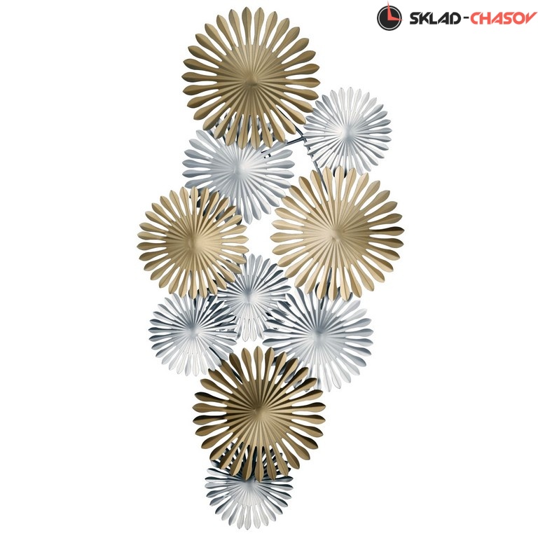 Декоративное настенное панно с объемными элементами, изготовлено из кованого металла. Возможно вертикальное или горизонтальное размещение. Размеры 113 x 58 x 6 см