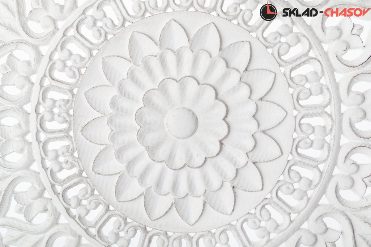 Отделка в грязно-белом цвете, с легкими потертостями.