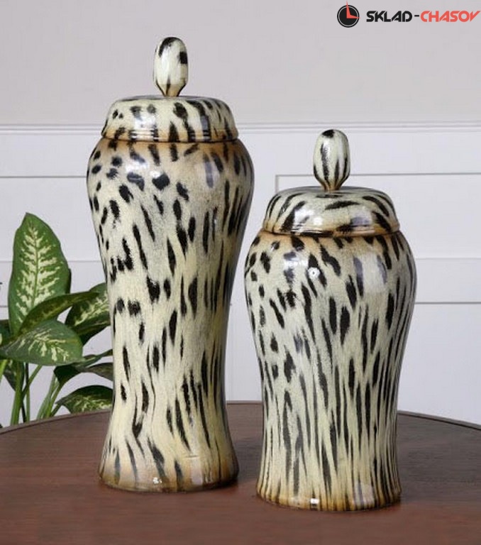 Керамические сосуды с рисунком, напоминающим раскраку гепарда.