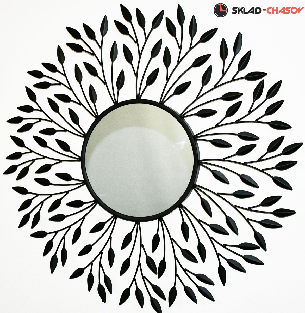 Настенное декоративное зеркало из металла черного цвета.