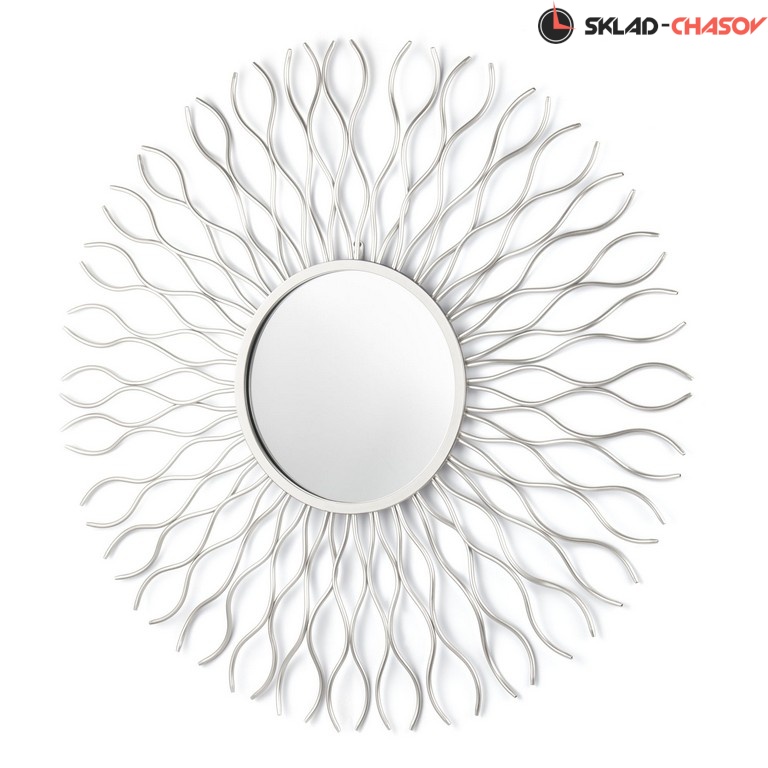 Декоративное настенное панно с зеркалом, в обрамлении из гнутых металлических стержней, тонировано в цвет матовое серебро.