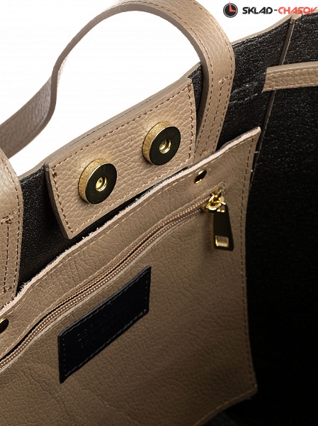 Классическая сумка из натуральной кожи. Внутри хлопковый съемный карман на молнии. Цвета:бежевый; Размеры: 40*30*16 см. Страна производства: Италия