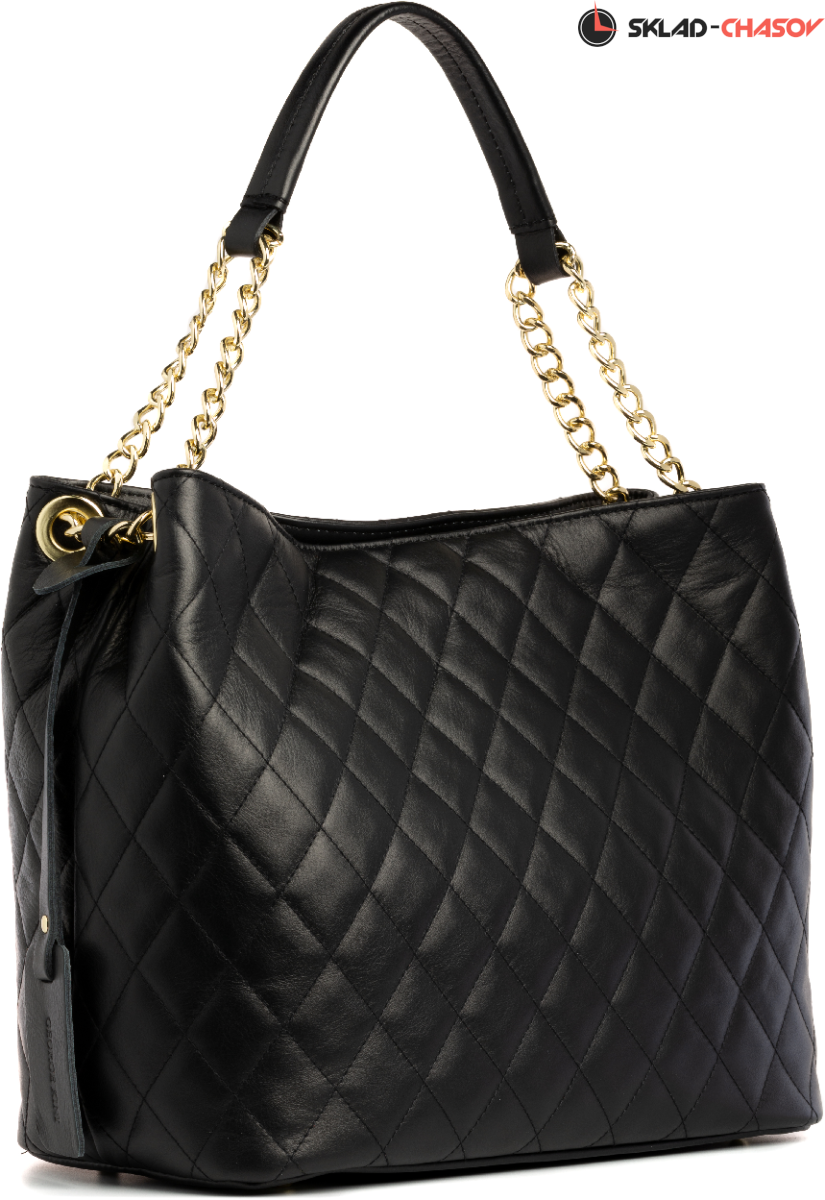 Сумка из натуральной стеганой кожи, застежка-молния, 1 центральное отделение на молнии, внутренний карман на молнии, 2 кармана для документов, ручка и металлическая цепочка из натуральной кожи, съемный плечевой ремень из натуральной кожи. Внутри хлопковая подкладка. Размеры: 30*24*17. Страна: Италия