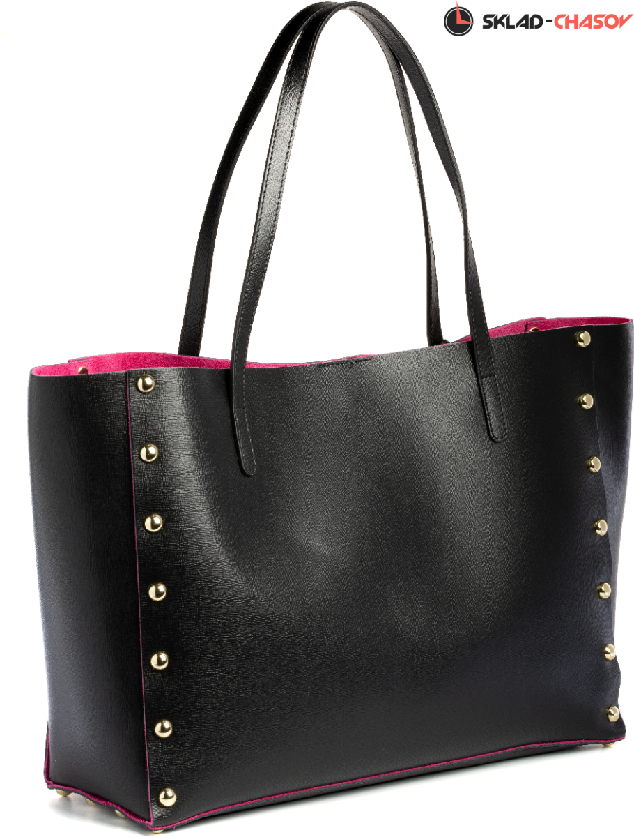 Длинные ручки из натуральной кожи, застежка на магните, с боковыми декоративными заклепками.