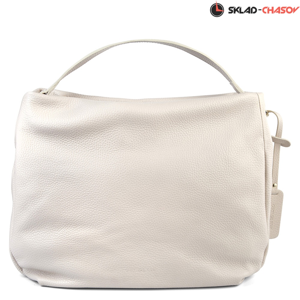 Женская сумка-мешок на молнии, выполнена из натуральной мягкой телячьей кожи, внутри хлопковая подкладка, карман на молнии, и два маленьких кармана, в комплекте плечевой ремень, Размеры:25*26*17, Слоновой кости цвета, Страна: Италия.