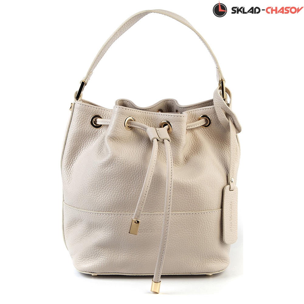 Женская сумка в форме мешка, выполнена из мягкой натуральной телячьей кожи, сумка затягивается при помощи кожаного шнурка, внутри хлопковая подкладка, карман на молнии и два кармашка, в комплекте плечевой ремень., Размеры:20*23*20, Слоновой кости цвета,