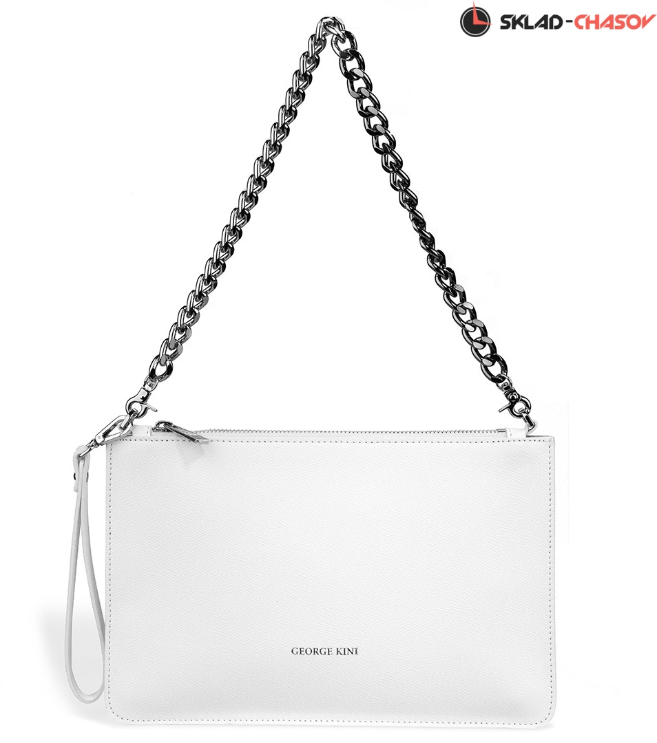 Маленькая изящная сумка-клатч, выполнена из натуральной кожи, на цепочке, внутри хлопковая подкладка, Белого цвета, размер: 28*18*1. производство: Италия