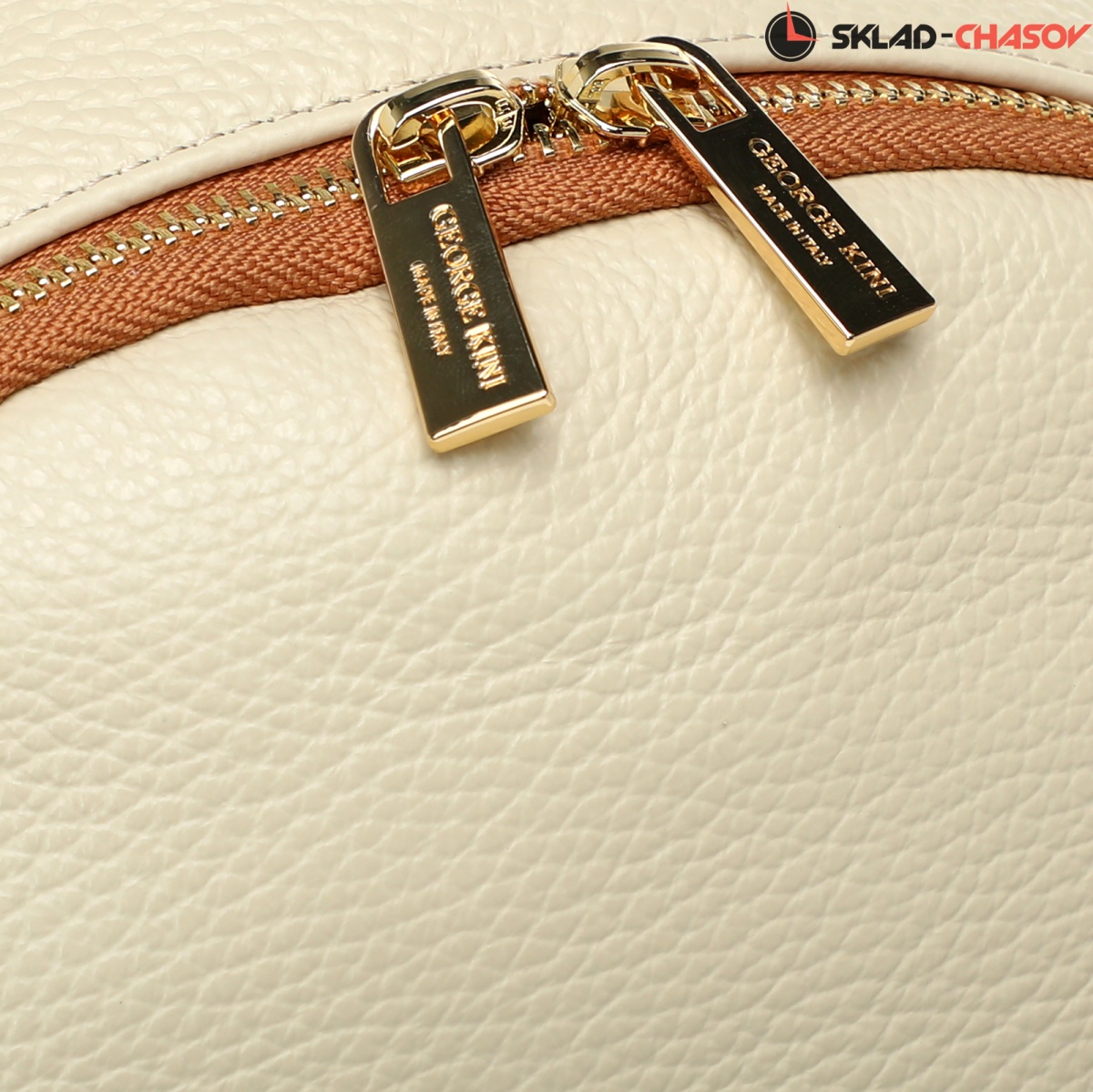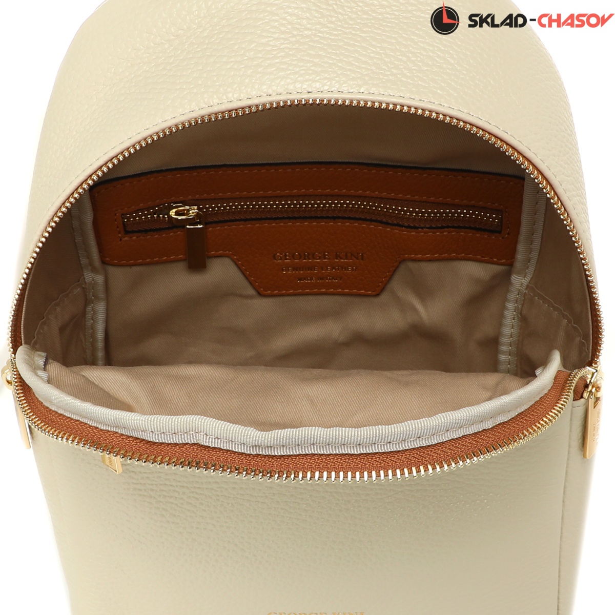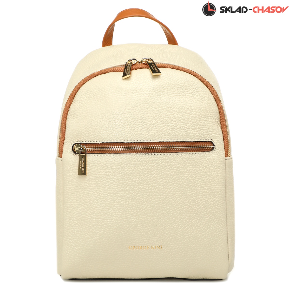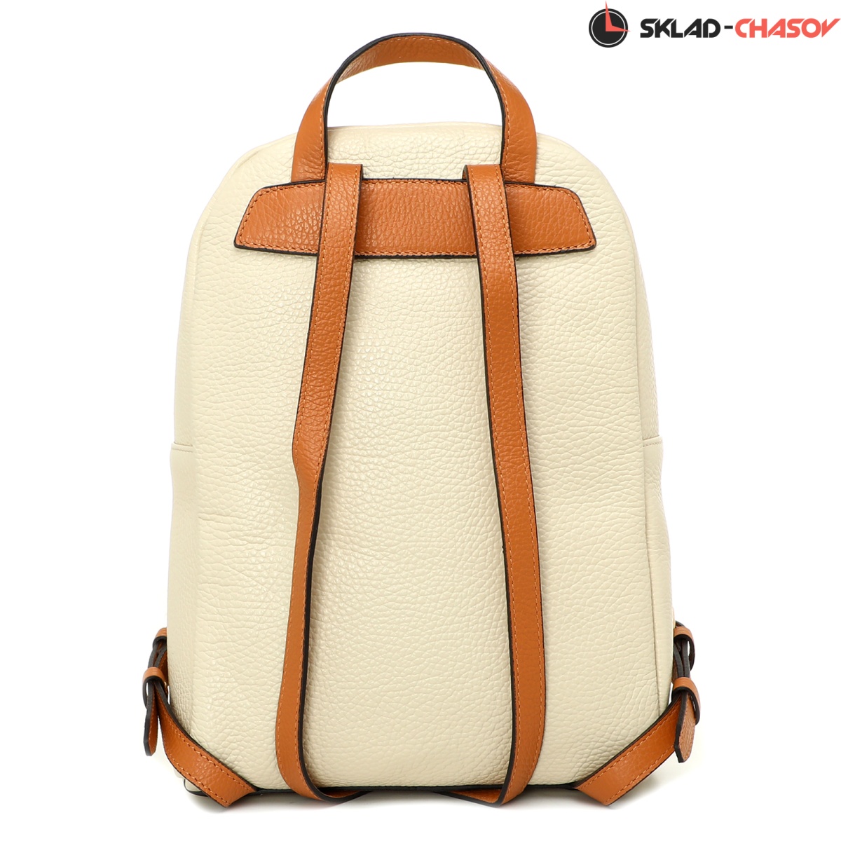 Небольшой рюкзак выполнен из натуральной кожи, внутри хлопковая подкладка, внутренний карман на молнии, внешний карман на молнии, бежевого цвета. Размеры: 22*29*8. Производство Италия.