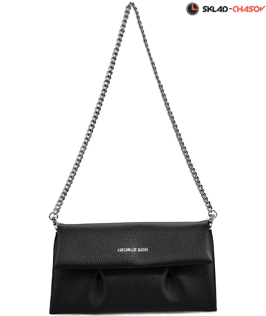 Маленькая изящная сумка-клатч, выполнена из натуральной кожи, на цепочке, внутри хлопковая подкладка, Черного цвета, размер: 23X12X4. производство: Италия