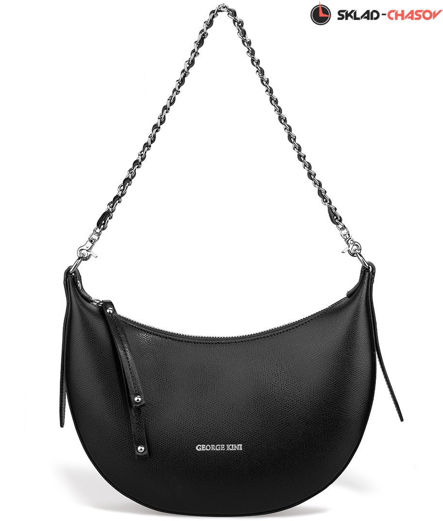 Женская сумка- Хобо, выполнен из натурально кожи, внутри хлопковая подкладка, Черного цвета, Размер: 27.5X20X6, Производство: Италия