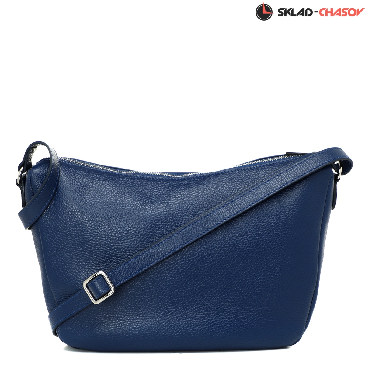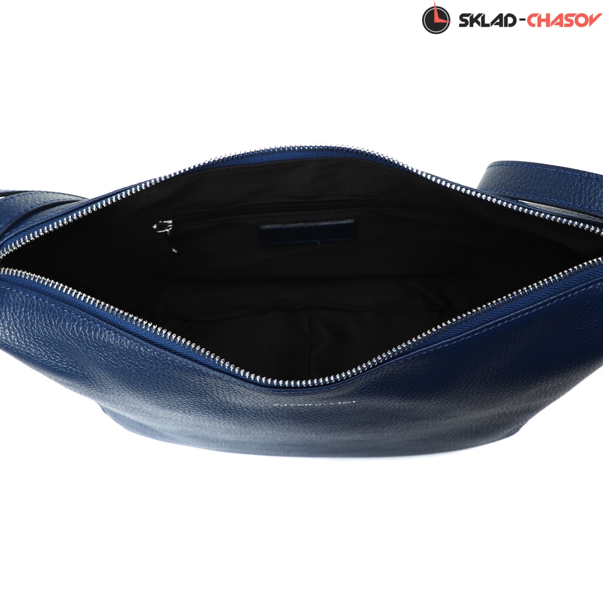 Женская сумка, выполнена из натуральной кожи, внутри хлопковая подкладка, карман на молнии и два открытых кармана для мелочи, регулируемый плечевой ремень. Размер: 33*23*12. Цвет синий. Производство Италия.