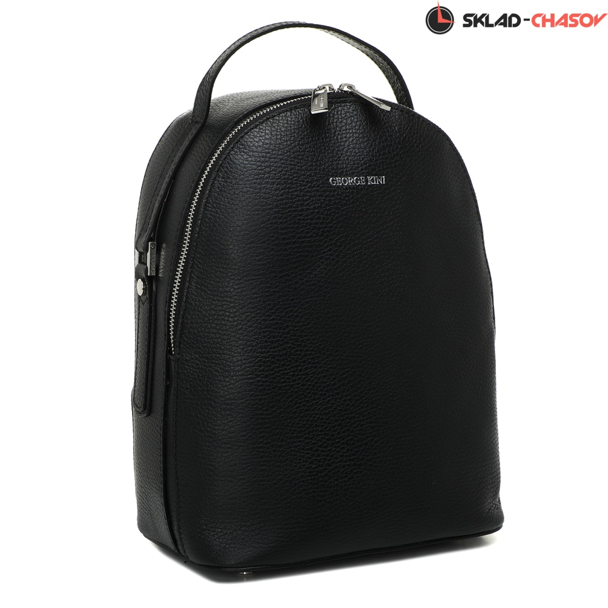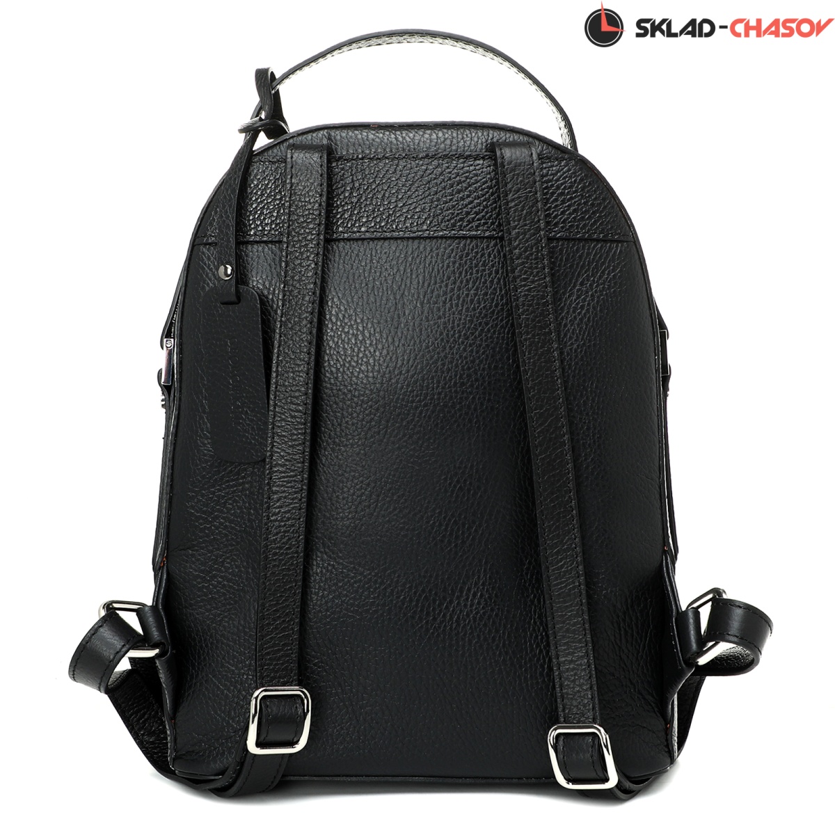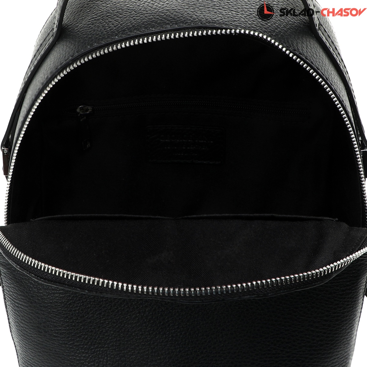 Женский рюкзак выполнен из гладкой натурально кожи, внутри хлопковая подкладка, один карман на молнии и два открытых кармана для мелочи, женское дно, надежные регулируемые лямки, Размер:22*30*10. Цвет черный. Производство Италия.