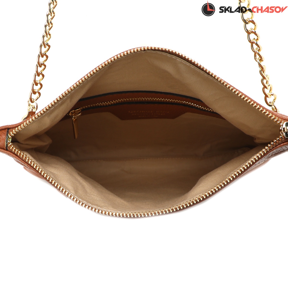 Маленькая перекидная сумка-клатч, выполнена из натуральной кожи, на цепочке, внутри хлопковая подкладка, Карамельного цвета, размер: 28*16*2. производство: Италия