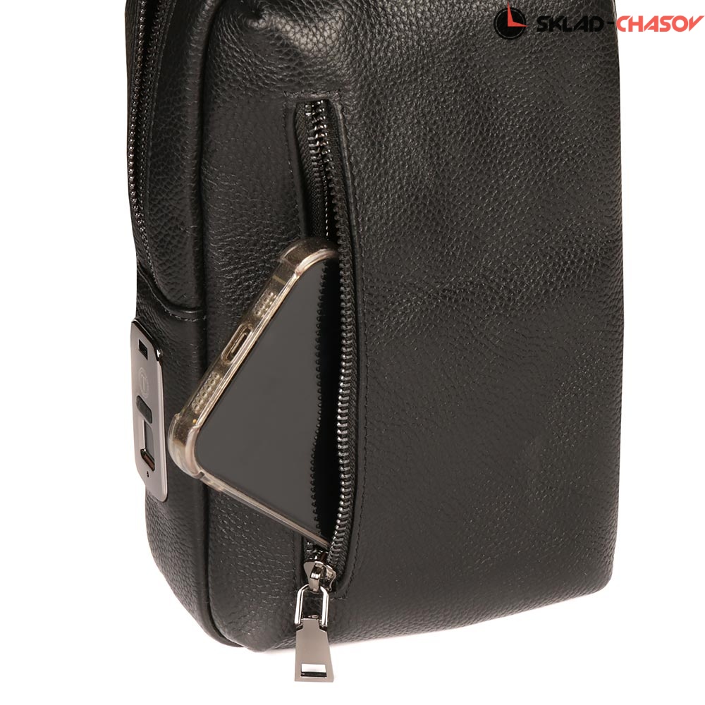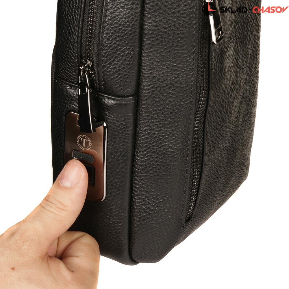 Сумка выполнена из неповторимой натуральной кожи в черном цвете. Имеет вместительное отделение для хранения документов, кошелька и любых мелочей. Все перевозимое в данной модели будет в безопасности благодаря закрытию молнии на замок с отпечатком пальца.