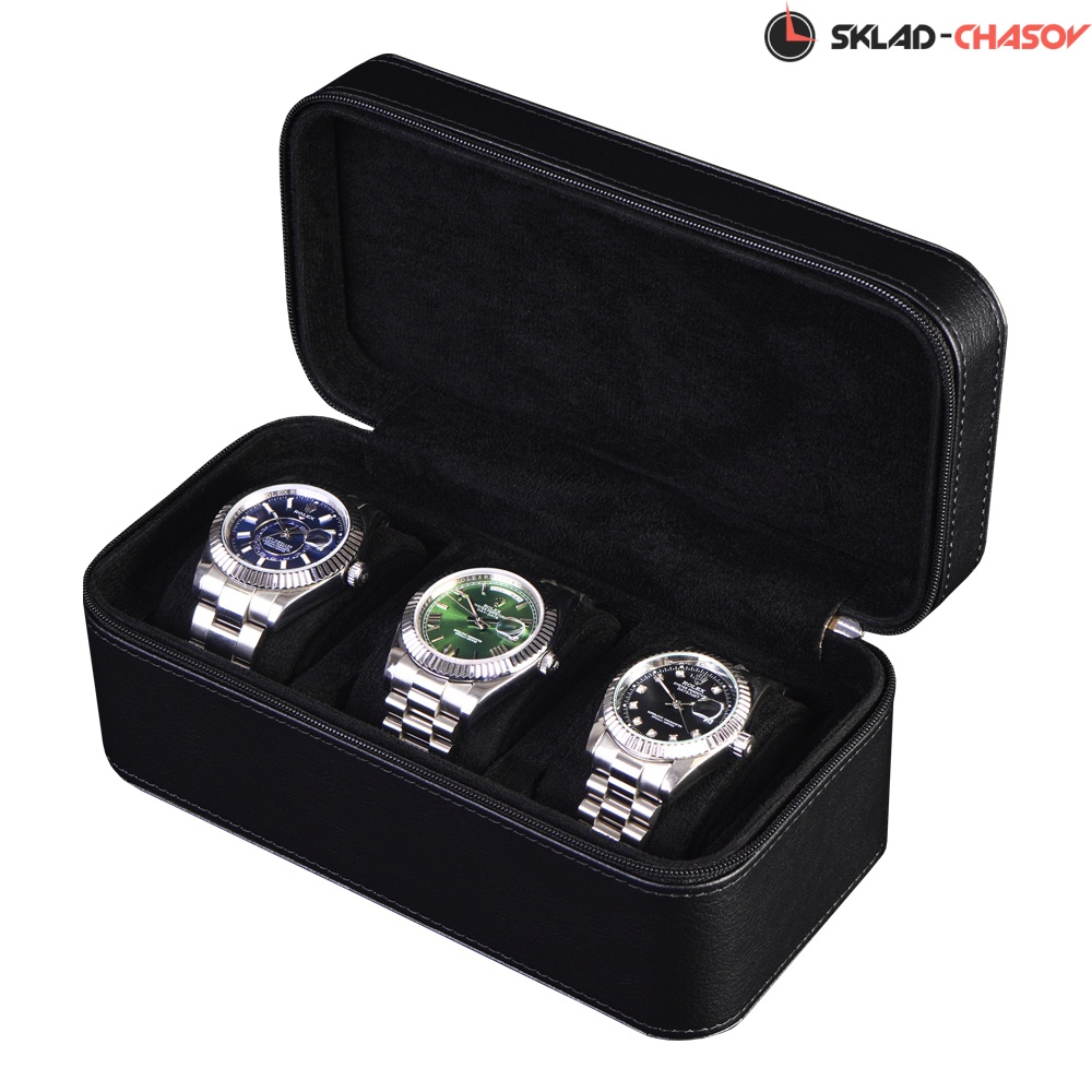 Футляр Voyage 03ZBL — практичное и стильное решение для хранения и транспортировки трёх часов.