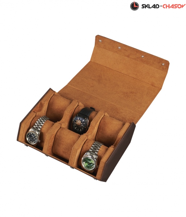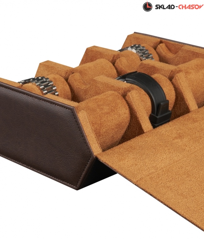 Невероятно удобный, шестиугольной формы футляр предназначен для перевозки 6-ти часов. Классический экстерьер, выполненный из черной кожи, добавляет изящность. В дополнении к элегантности черный корпус переходит в приятный бархатный интерьер темно-фиолетового оттенка. Удобные внутренние подушки позволят с максимальным удобством расположить часы любых размеров.