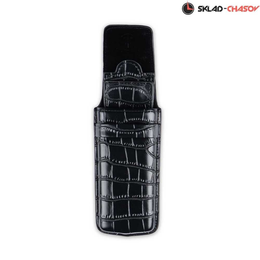Невероятно удобный, плоского вида футляр предназначен для перевозки 1-х часов. Классический экстерьер, выполненный из черной кожи крокодила, добавляет изящность. В дополнении к элегантности черный корпус переходит в приятный интерьер аналогичного цвета. Специальная вкладка позволит с максимальным комфортом и удобством застегнуть на них часы любого размера.