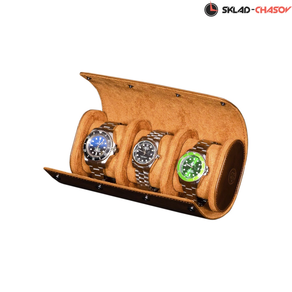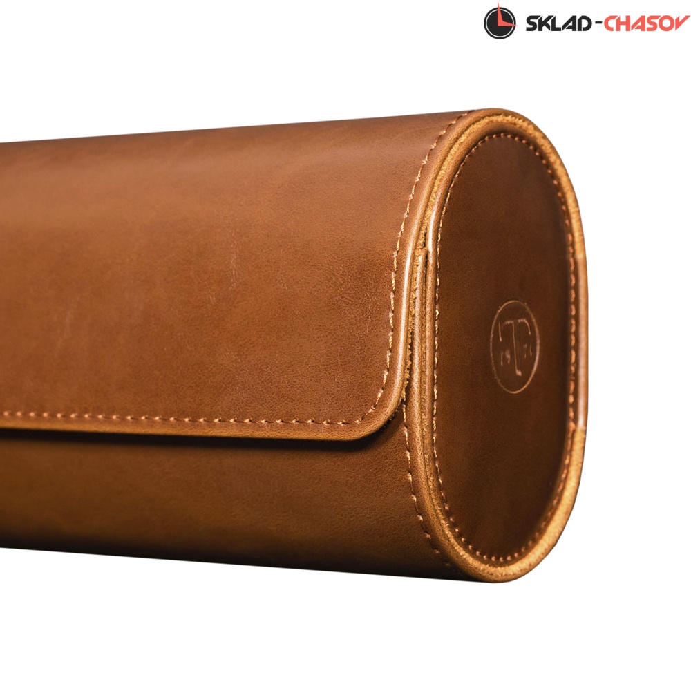 Невероятно удобный, цилиндрической формы футляр предназначен для перевозки 3-х часов. Классический экстерьер, выполненный из коричневой кожи, добавляет изящность, а его износостойкость необыкновенно высока. В дополнении к элегантности коричневый корпус переходит в приятный бархатный интерьер аналогичного оттенка. Удобный внутренний валик позволит с максимальным удобством расположить часы любых размеров.