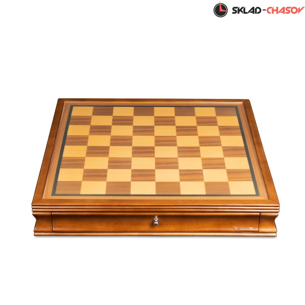 Для хранения фигур в шахматной доске есть два выдвижных ящика, выполненных внутри из приятного светлого бархата.