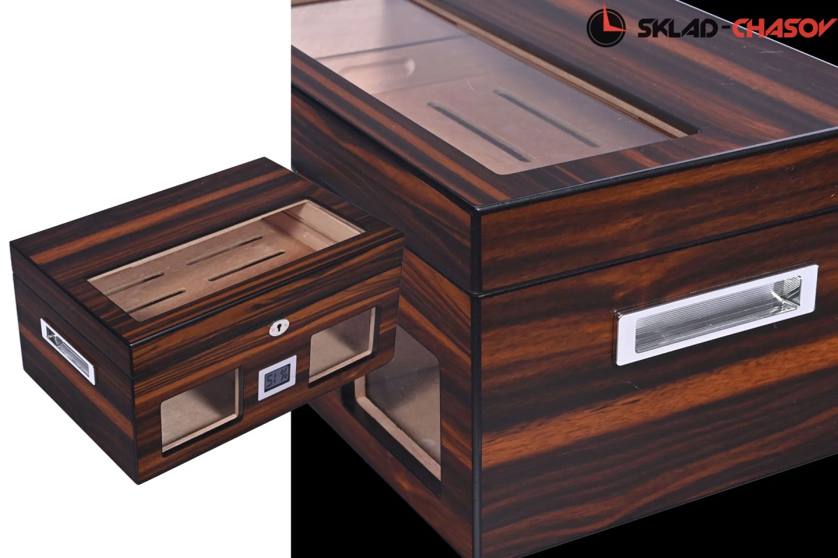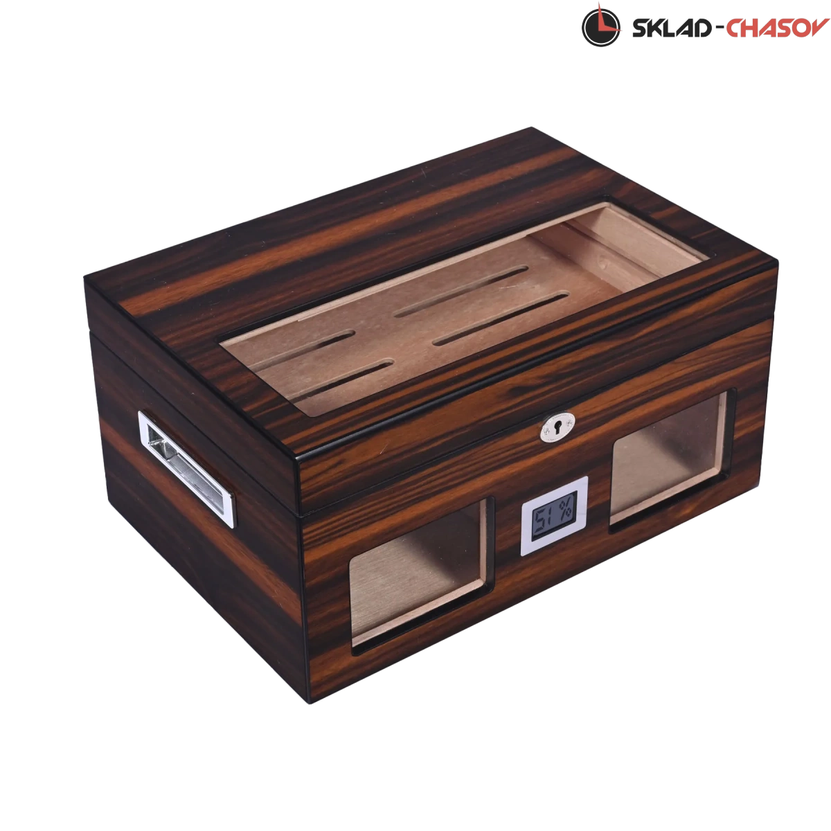 Большой Хьюмидор для полноценного хранения ориентировочно 70 сигар, двойное дно. Коричневое дерево венге, в комплекте увлажнитель - новинка (цифровой).