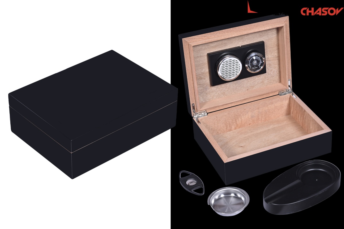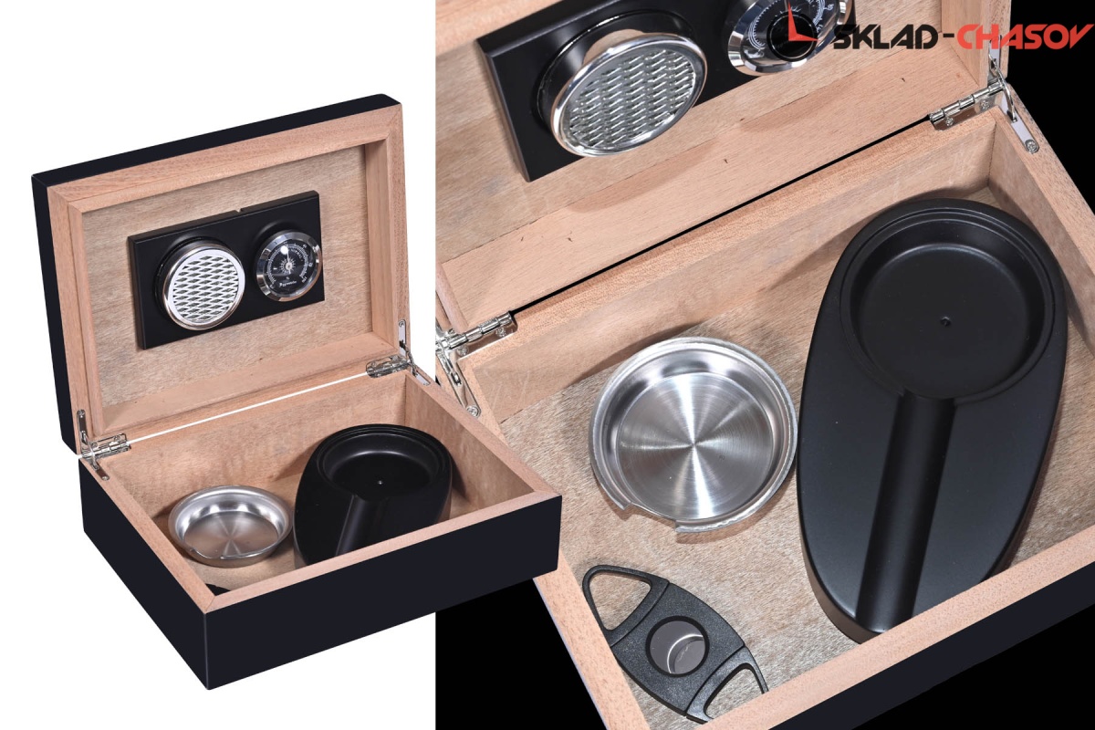 Хьюмидор для полноценного хранения ориентировочно 30 сигар. Чёрное дерево венге, в комплекте увлажнитель, датчик, гильотина.