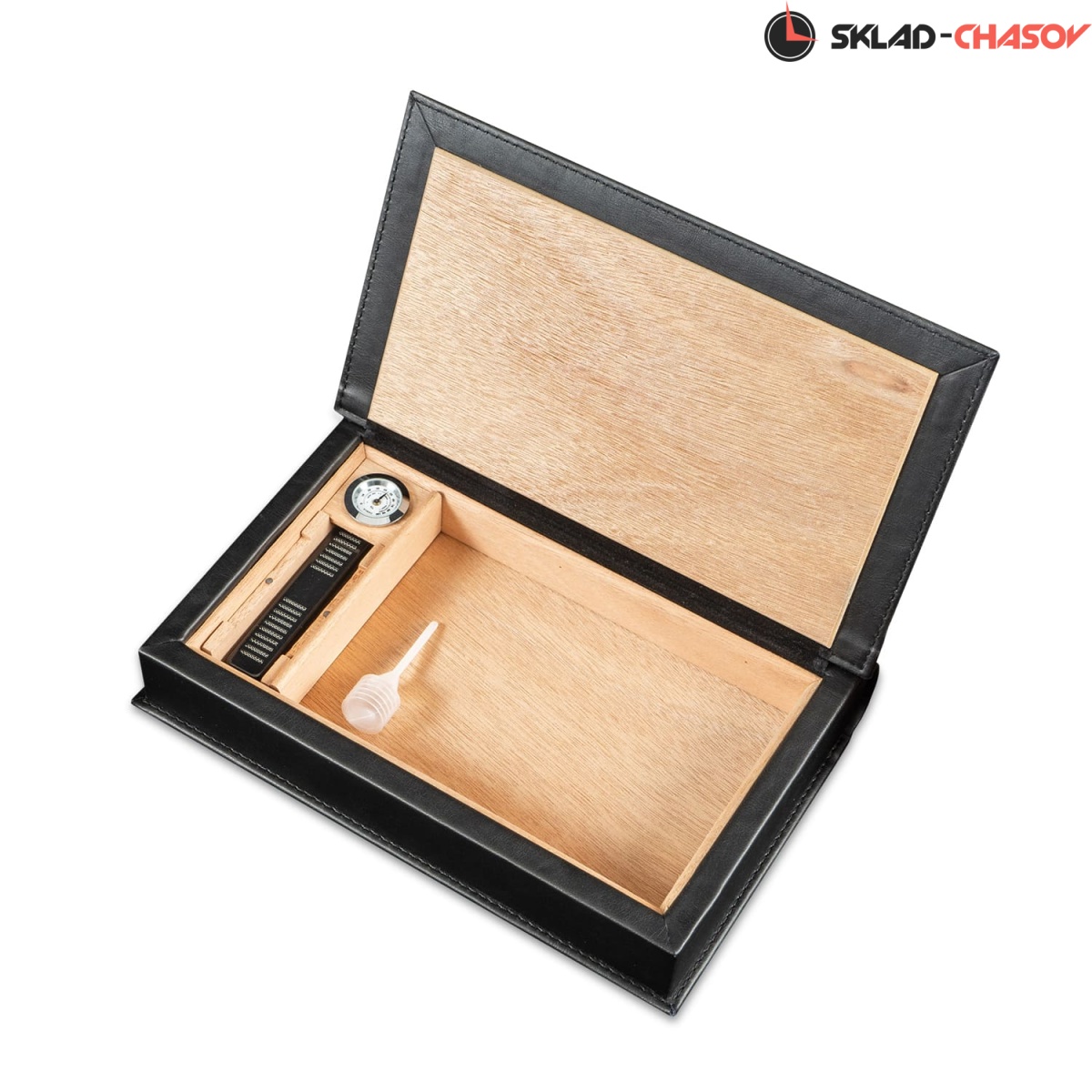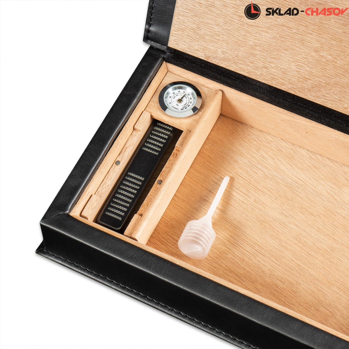 Для настоящих ценителей сигар, хьюмидор оборудован высокоточным аналоговым гигрометром и увлажнителем.