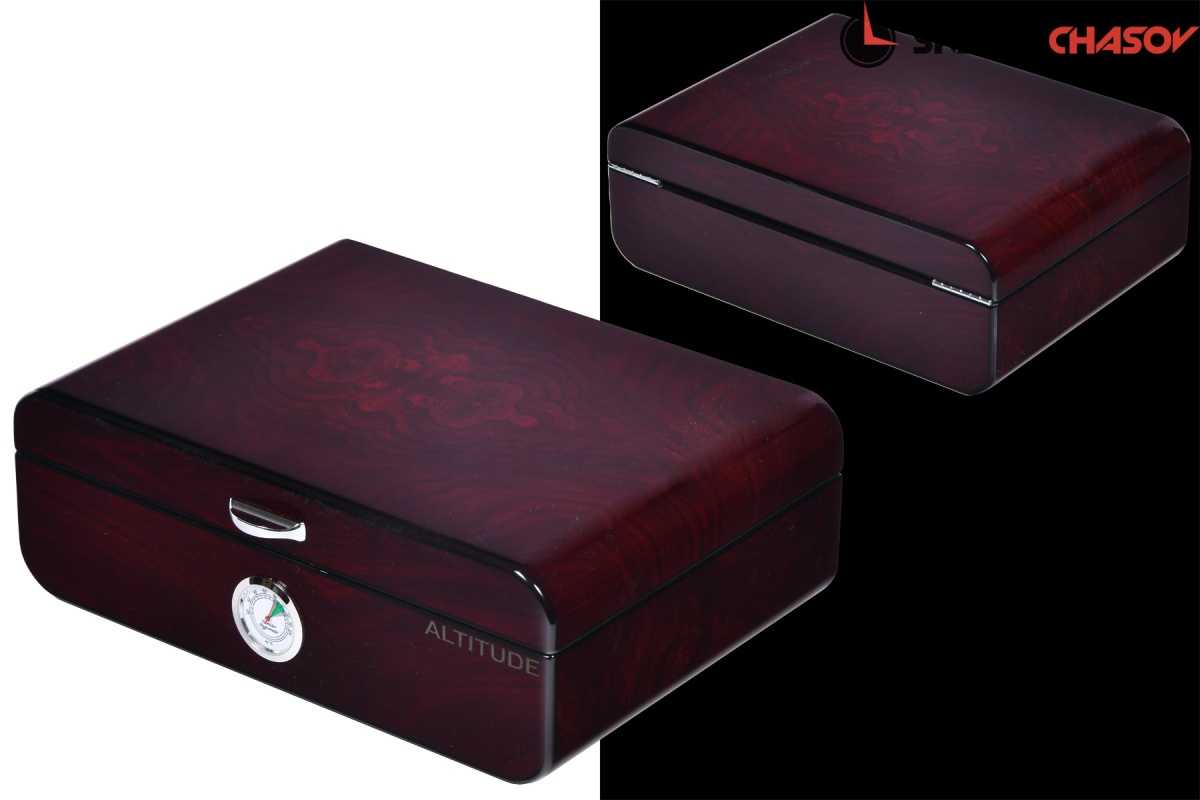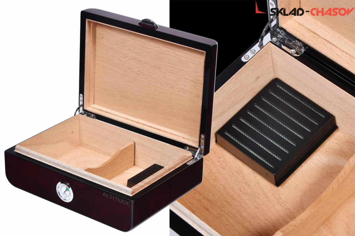 Хьюмидор из цельного дерева с отделкой карбоном, внешний датчик, съемные блоки, предназначен от 25-50 сигар.