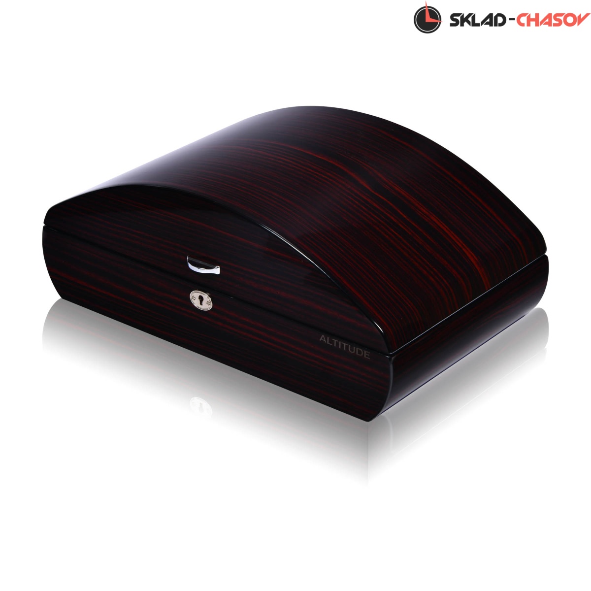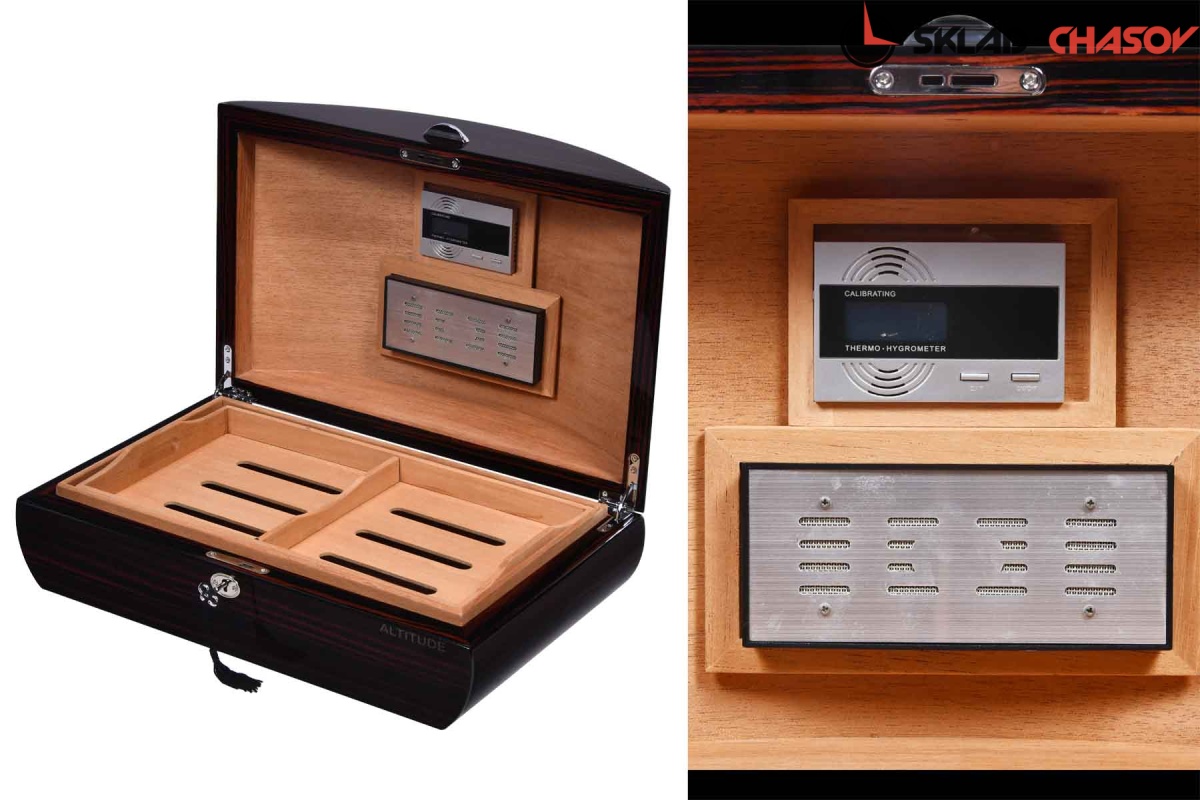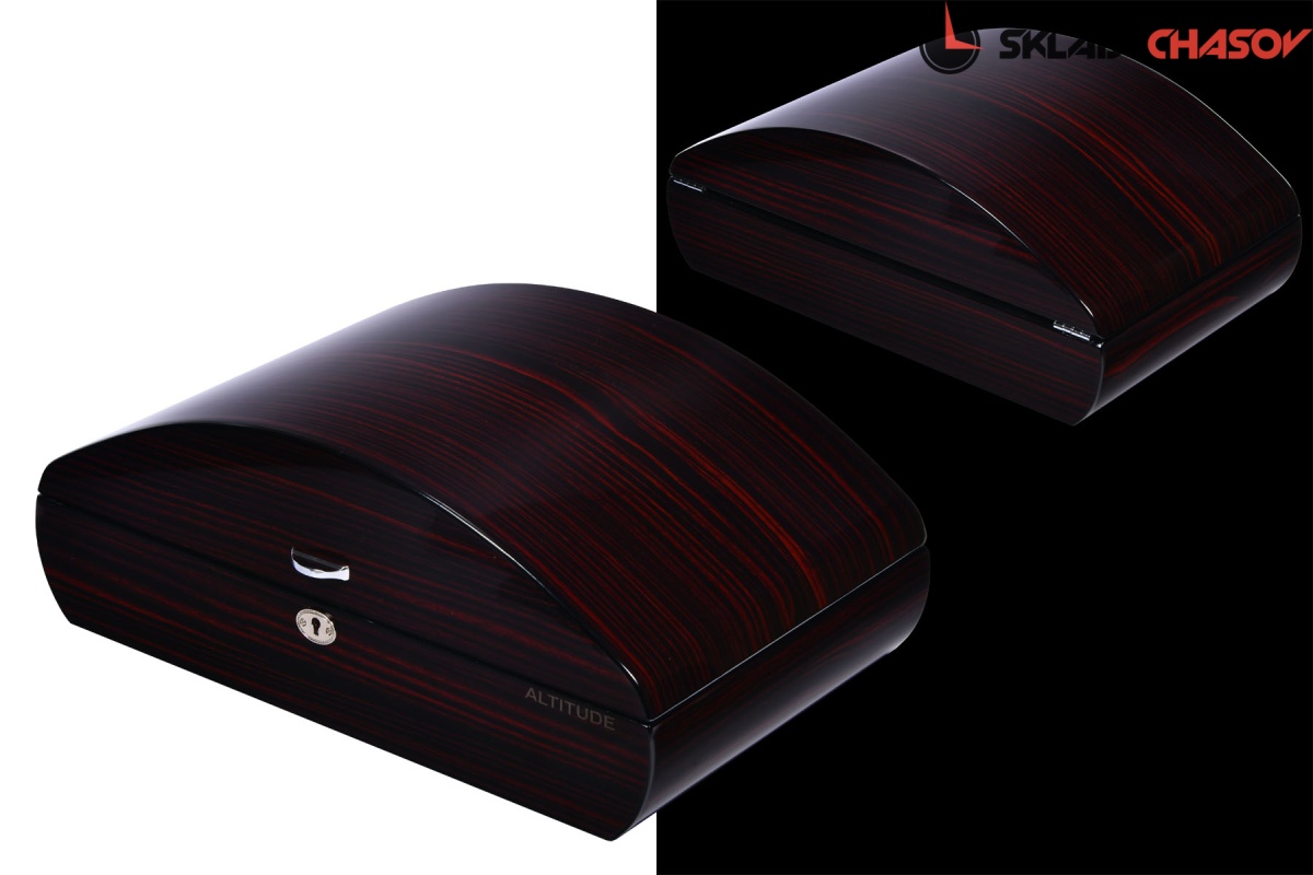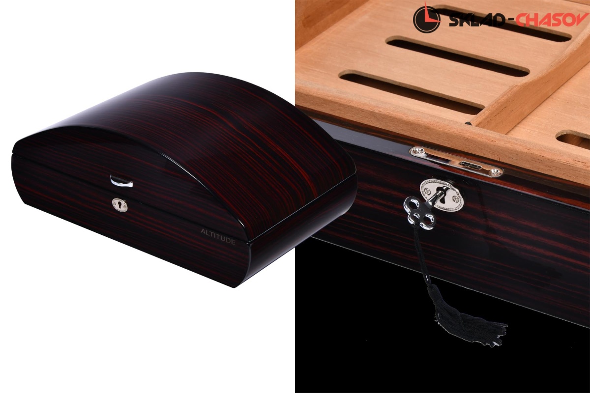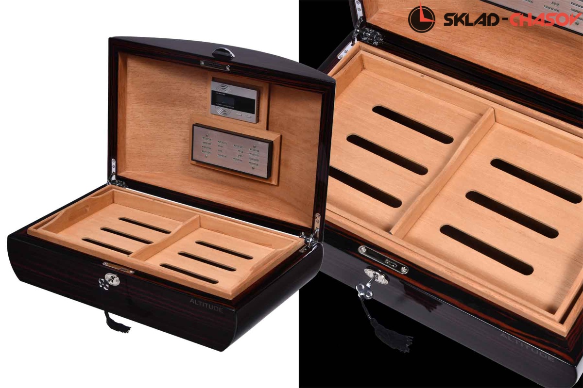 Хьюмидор из цельного дерева макасар с дизайнерской формой, внутри датчик влажности, съемные блоки, предназначен от 100-200 сигар.