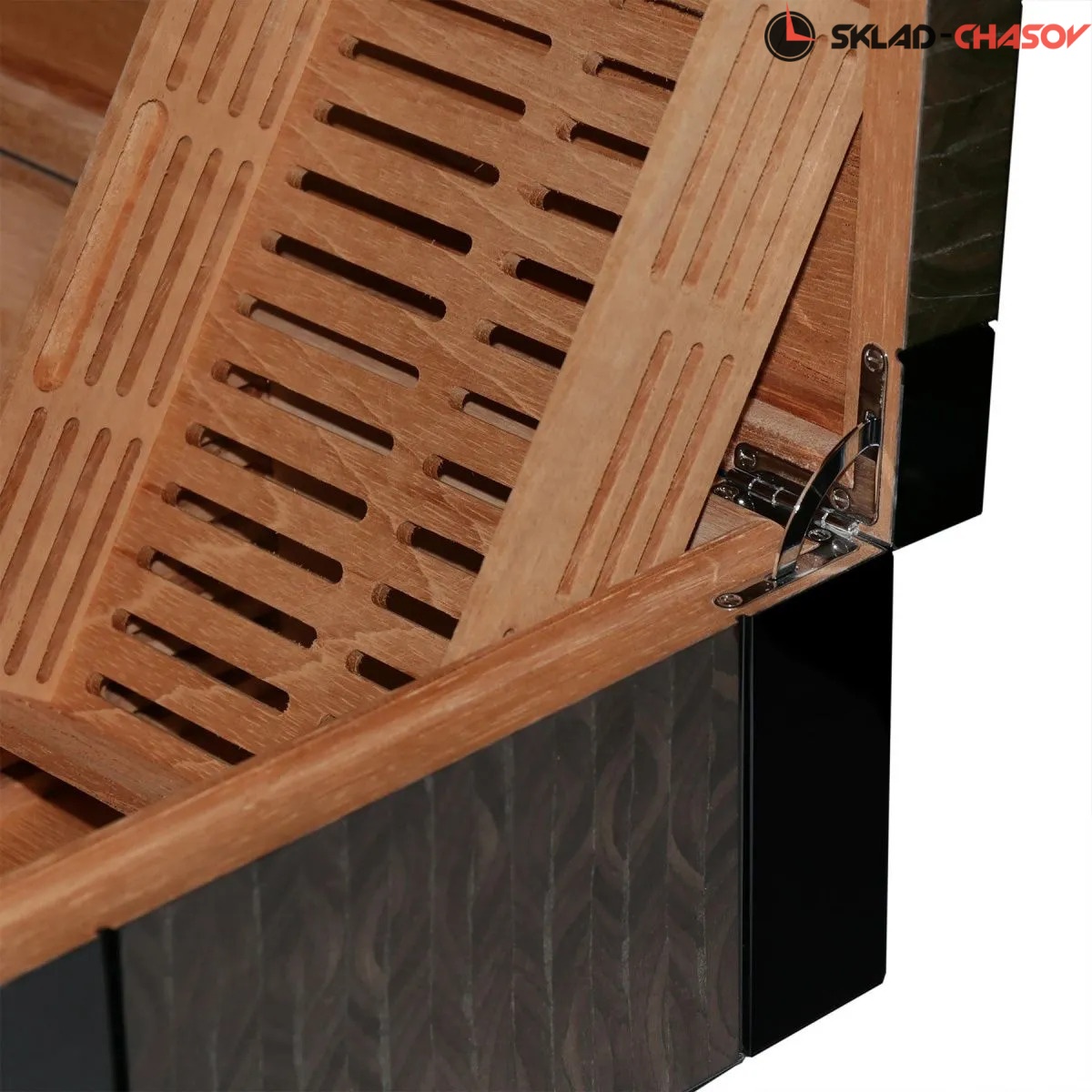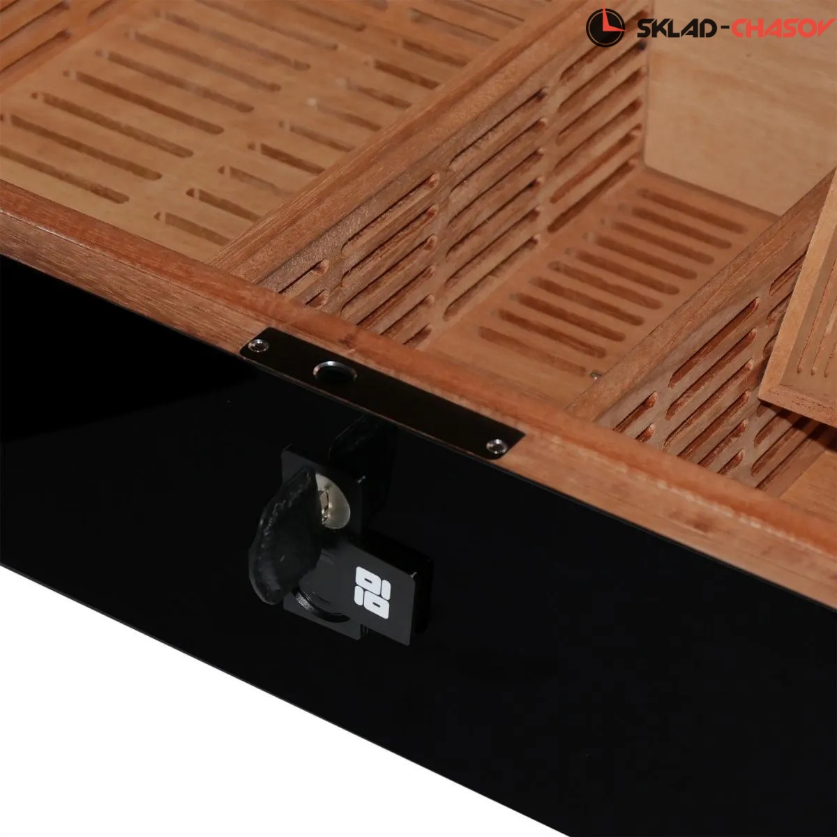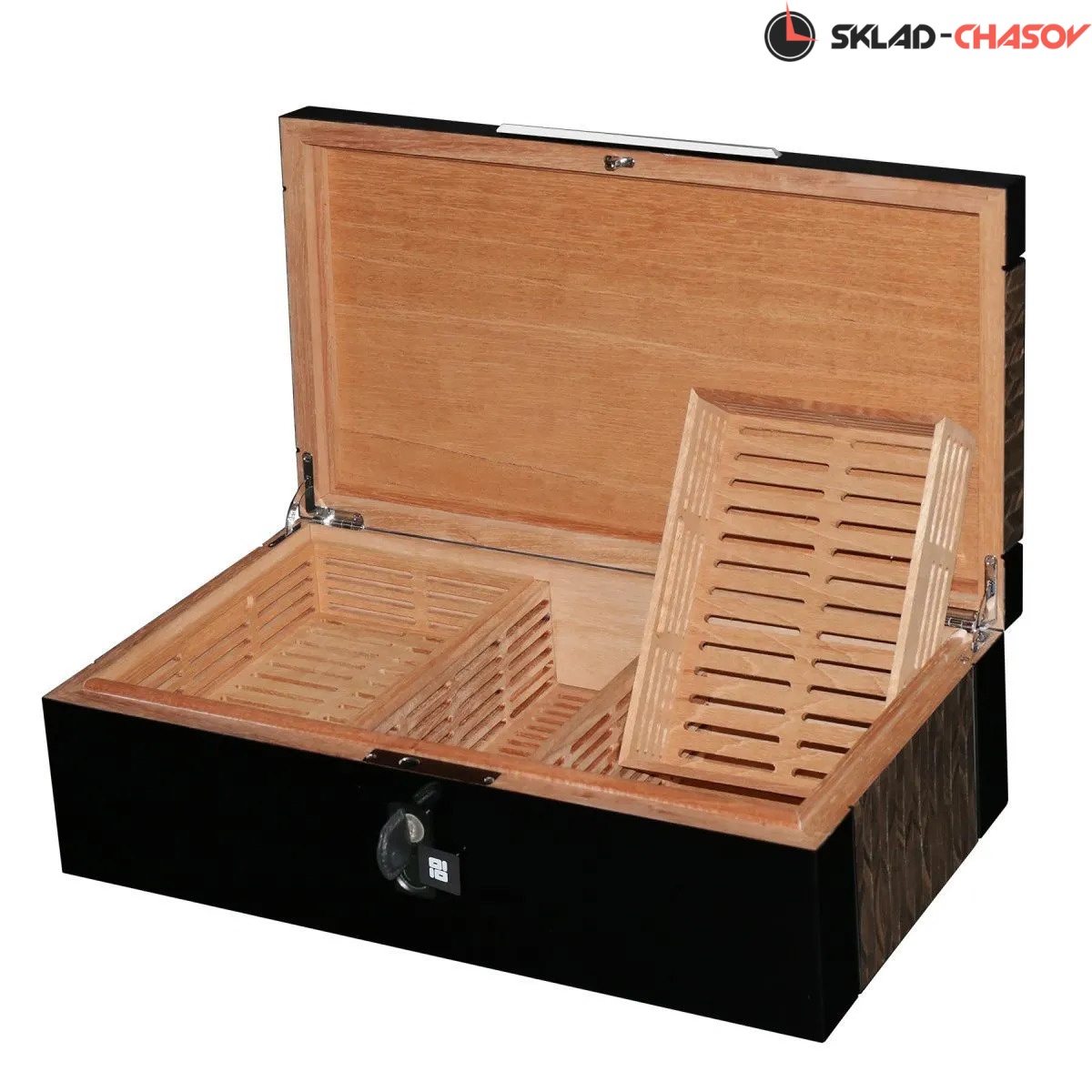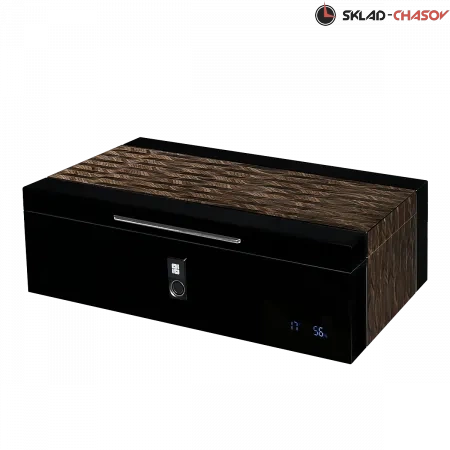 Элегантный хьюмидор премиум-класса Romeo SR предназначен для бережного хранения и поддержания идеальных условий для ваших сигар. Корпус выполнен из тёмного дерева, с вставками из серого мрамора и покрыт рояльным лаком, создавая благородный глянец. Внутреннее пространство из натурального шпона кедра создает оптимальный микроклимат для сохранения аромата и качества сигар. На торцевой части есть скрытый дисплей, отображающий температуру и влажность, поддерживаемую внутри. Хьюмидор оснащен замком, закрывающимся на ключ в кожаной оплётке и сканером отпечатка пальца.