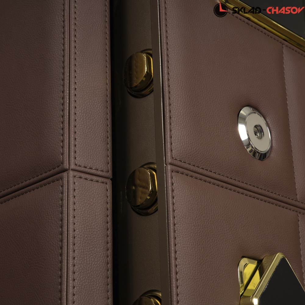 Изготовлен из сверхмощной стали, покрытой специальной износостойкой краской. Внешне сейф обшит высококачественной кожей приятного коричневого оттенка.