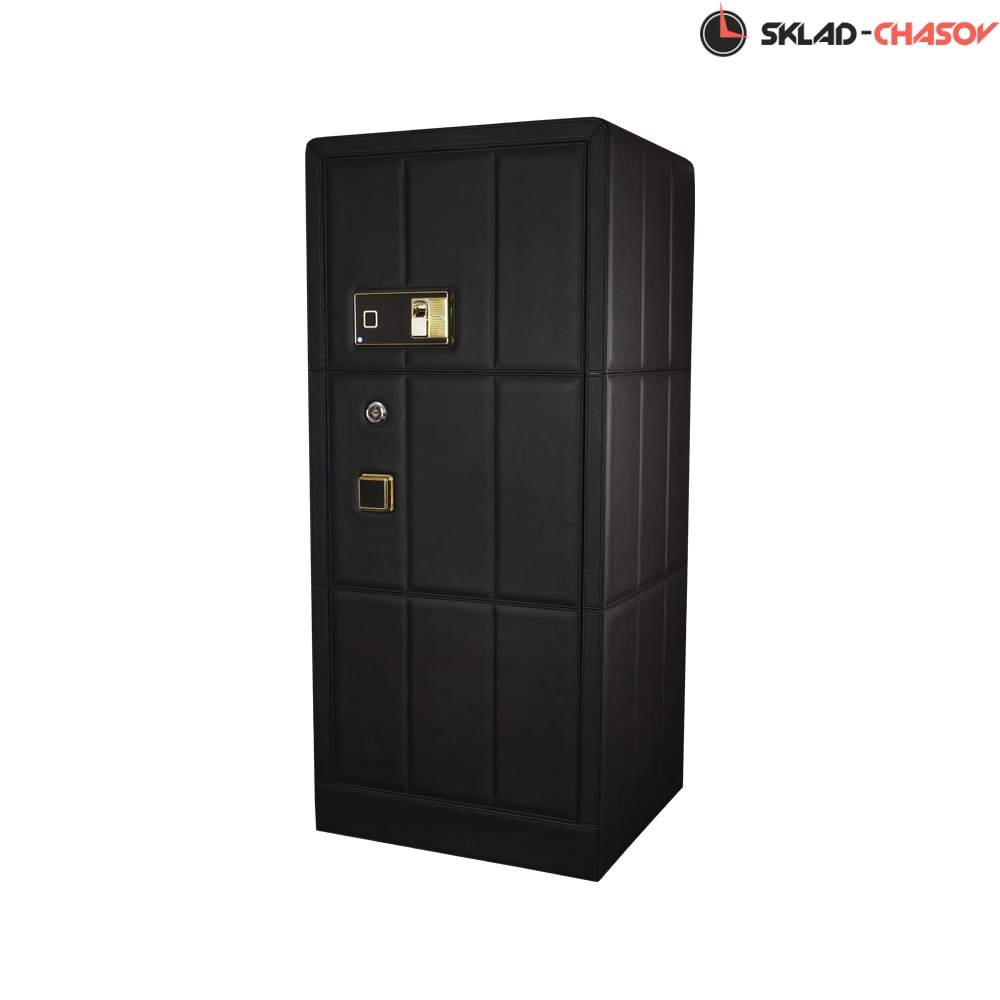 Изготовлен из сверхмощной стали, покрытой специальной износостойкой краской. Внешне сейф обшит высококачественной кожей приятного черного оттенка.