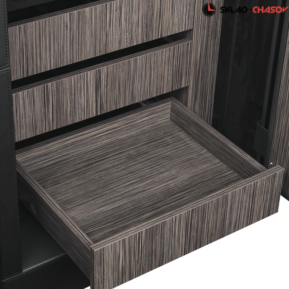 Под секцией с автоподзаводом располагаются трое выдвижных ящиков с доводчиками. Их вы сможете использовать для хранения абсолютно любых ценностей.