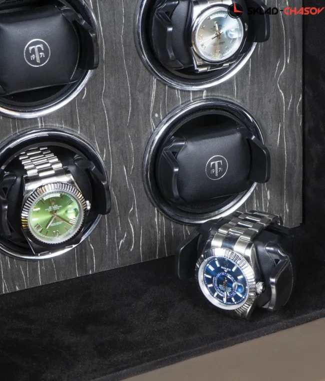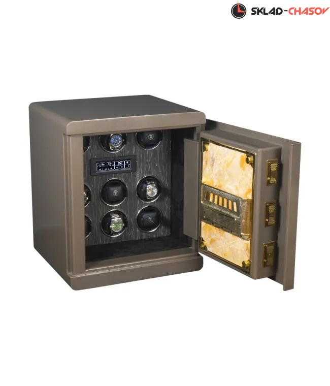 Вдохновившись монументальностью и высокой степенью безопасности крупнейшего художественного музея мира была создана коллекция неприступных сейфов Louvre. Использование самых последний технологий позволило создать максимально взломостойкий сейф со встроенным автоподзаводом ваших любимых наручных часов. Изготовлен из сверхмощной стали, покрытой специальной износостойкой краской. Для вашего спокойствия и удобства, инновационный сейф Louvre оборудован 2-мя способами открытия: - Электронный замок с кодом доступа от 3-х до 8-ми цифр - Традиционный ключ Сейф был продуман до мелочей. Его взломостойкость заслуживает отдельного восхищения. Дверь сейфа закрывается посредством шести больших штанг с использованием новейших технологий компании TimeStory. Для настоящих ценителей своих часов, внутри сейфа предусмотрен автоподзавод 9-ти часов, который включается всего с одной кнопки на сенсорной консоли. Профессиональная система выбора режимов вращения сможет завести любые часы любой сложности. Достаточно просто на сенсорном экране подобрать нужное количество оборотов (от 650 до 1950), выбрать подходящее вращение (по часовой / против часовой стрелки или попеременное вращение) и часы будут автоматически подзаводиться. Можно остановить вращение определенных часов в шкатулке для удобного извлечения их из ячейки. Для ночной видимости часов, в сейфе встроена приятная светло-синяя светодиодная подсветка, включающаяся с сенсорной кнопки на дисплее. Использование приятного черного бархата и редкого дерева Ebony в интерьере не оставит вас быть равнодушными. Телескопические держатели позволят с максимальным комфортом и удобством застегнуть на них часы с любой длиной ремешка или браслета.