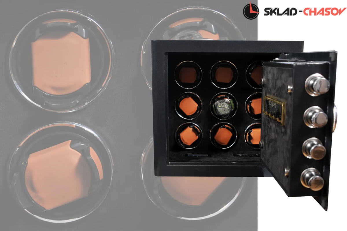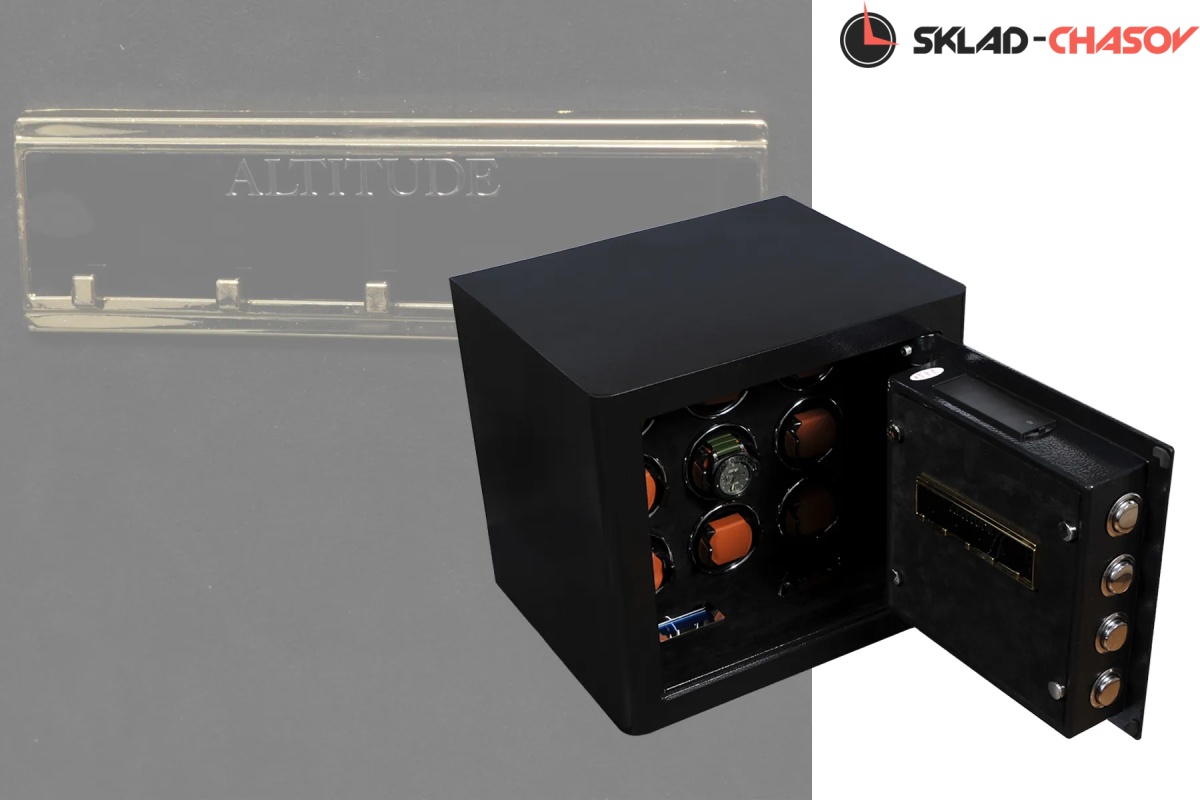 Новая линейка от немецкого производителя "Altitude" позволяет использовать эти удобные, красивые, функциональные сейфы в интерьере или в потайных местах, возможно прикрутить его к стене или встроить , нужен только источник питания 220 вольт. Открытие несколькими способами, отпечаток пальца, электронный замок и ключ. Внутри выстлан чёрной алькантарой с коричневыми телескопическими держателями для часов, фиксация внутри стакана, полный профессиональный подход к хранению и подзавода ваших часов. Электронное табло нового поколения позволяет подзаводить любые часы - любой сложности за счёт всех возможных регулировок направления и количества оборотов. Сейф 2 категории прекрасно защитит ваше часы в случаи взлома. Шкатулки для автоподзавода часов от немецкой компании Altitude комплектуются удобными универсальными держателями.