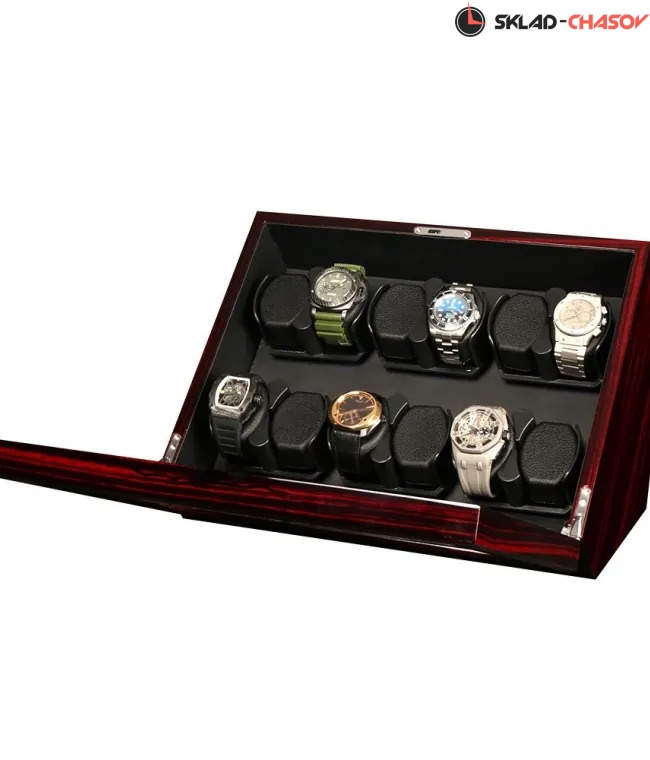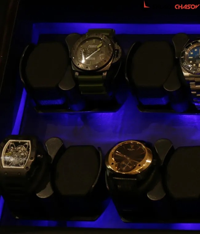 Воспроизводя свои воспоминания, компания TimeStory решила создать похожую модель шкатулки, которая была отрисована основателем компании в далеких 70-х на рабочем столе в первой фабрике. Непревзойденная коллекция была названа в честь округа, где было расположено первое производство компании, а именно Acton. Легким движением руки открывается крышка шкатулки, в которую вы сможете установить 12-ть часов для автоподзавода. При закрытой крышке через стекло искусные коллекционеры смогут наслаждаться подзаводом любимых часов. Для ночной видимости часов, в шкатулке встроена приятная светло-синяя светодиодная подсветка под кольцами подзавода, включающаяся с кнопки на задней стороне. Демонстрируя свои часы через крышку, нужно не забывать про их сохранность. Обеспечить ее позволяет небольшой замочек на торцевой части, закрывающийся на ключ. В экстерьере используется высококачественное дерево макассар, покрытое большим количеством слоев глянцевого лака. Для максимальной простоты в использовании автоподзавод включается всего с одной кнопки на задней стороне бокса. Истинные ценители часов оценят четыре режима подзавода в шкатулке, управляемые на задней части шкатулки. Продуманная система выбора режимов вращения сможет завести любые часы любой сложности. Достаточно просто повернуть тумблер на нужный режим, и часы будут автоматически подзаводиться. Можно выбрать вращение не только по часовой и против часовой стрелки, но и попеременное вращение. Использование приятной мягкой кожи черного оттенка в интерьере не оставит вас быть равнодушными. Эргономичные подушки позволят с максимальным комфортом и удобством застегнуть на них часы любых размеров. Вам остается лишь подключить шкатулку к сети и наслаждаться подзаводом любимых часов.