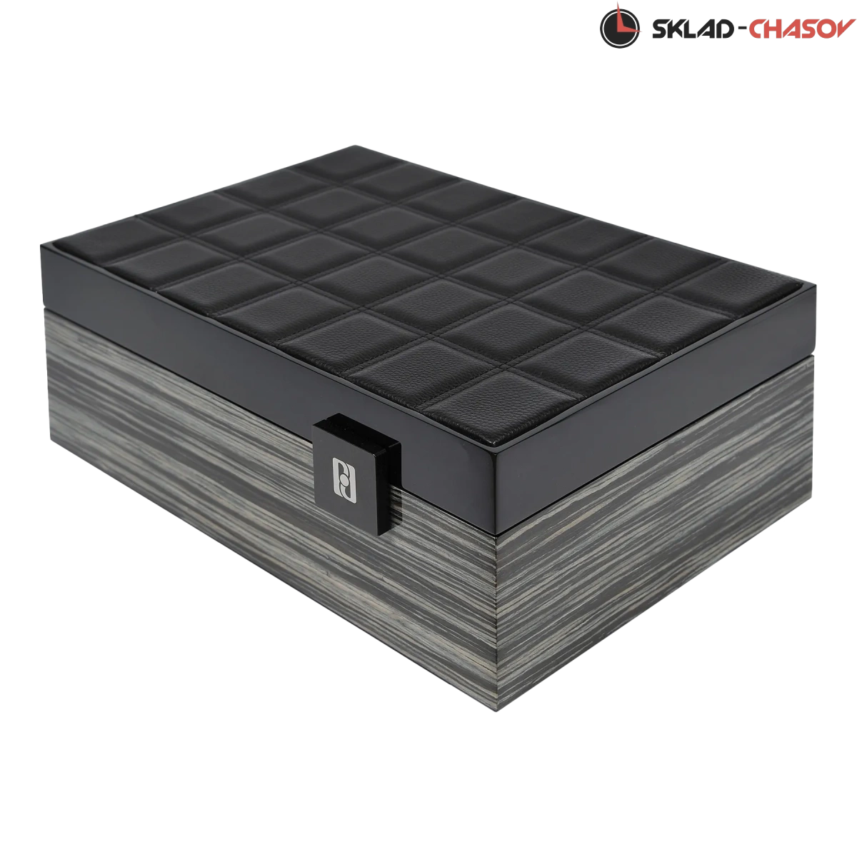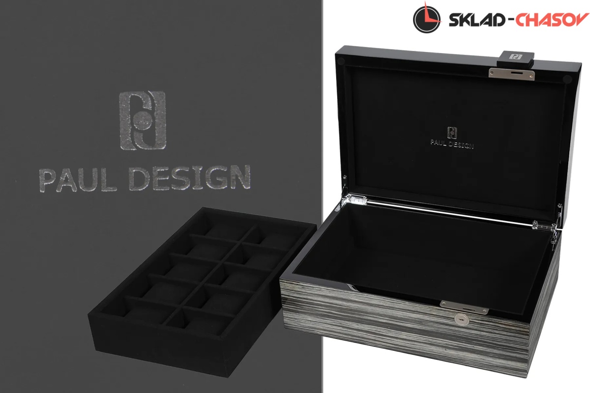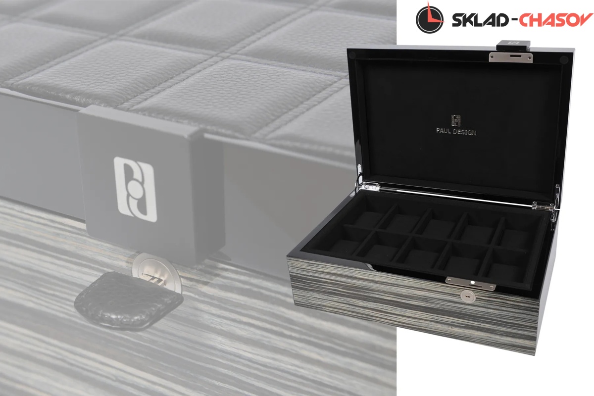 Новейшая, стильная и дорогая шкатулка от легендарного Paul Design. Выполнена из прекрасного африканского дерева агар и натуральной итальянской кожи с ромбиками, закрывается при желании на ключик с кожаной оплёткой, замок закрывает фирменный лого PD, внутри выстлана микрофиброй для долгого потребления, держатели нового поколения позволяют хранить часы любого размера. Упаковка фирменная и подарочная чёрная коробка PD.