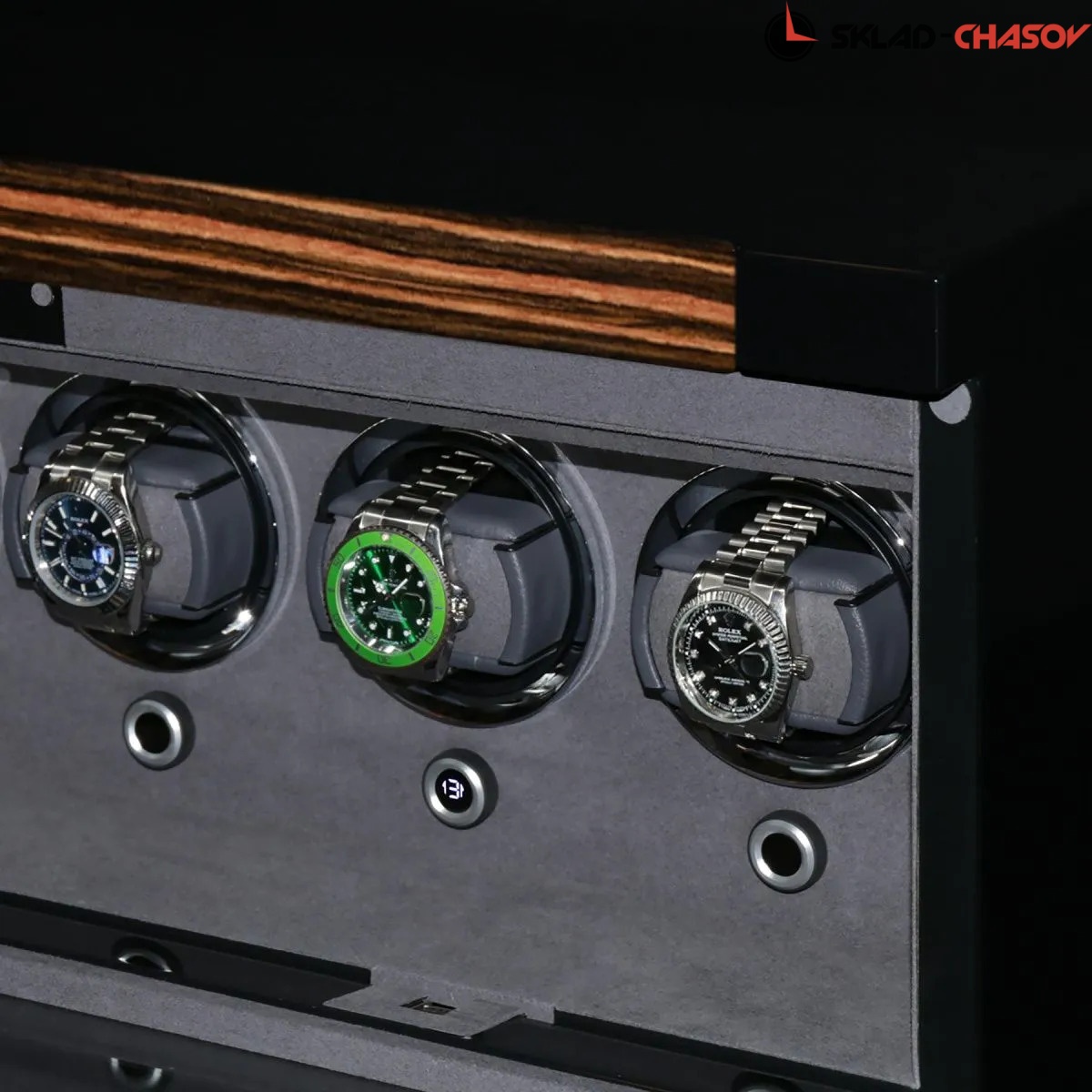 Модель оснащена пятью независимыми ячейками автоподзавода, каждая из которых настраивается индивидуально. Это позволяет подобрать оптимальный режим для часов разных брендов и калибров. Есть возможность настроить как сторону вращения, так и кол-во оборотов, диапазон от 480 до 1950 оборотов в сутки.