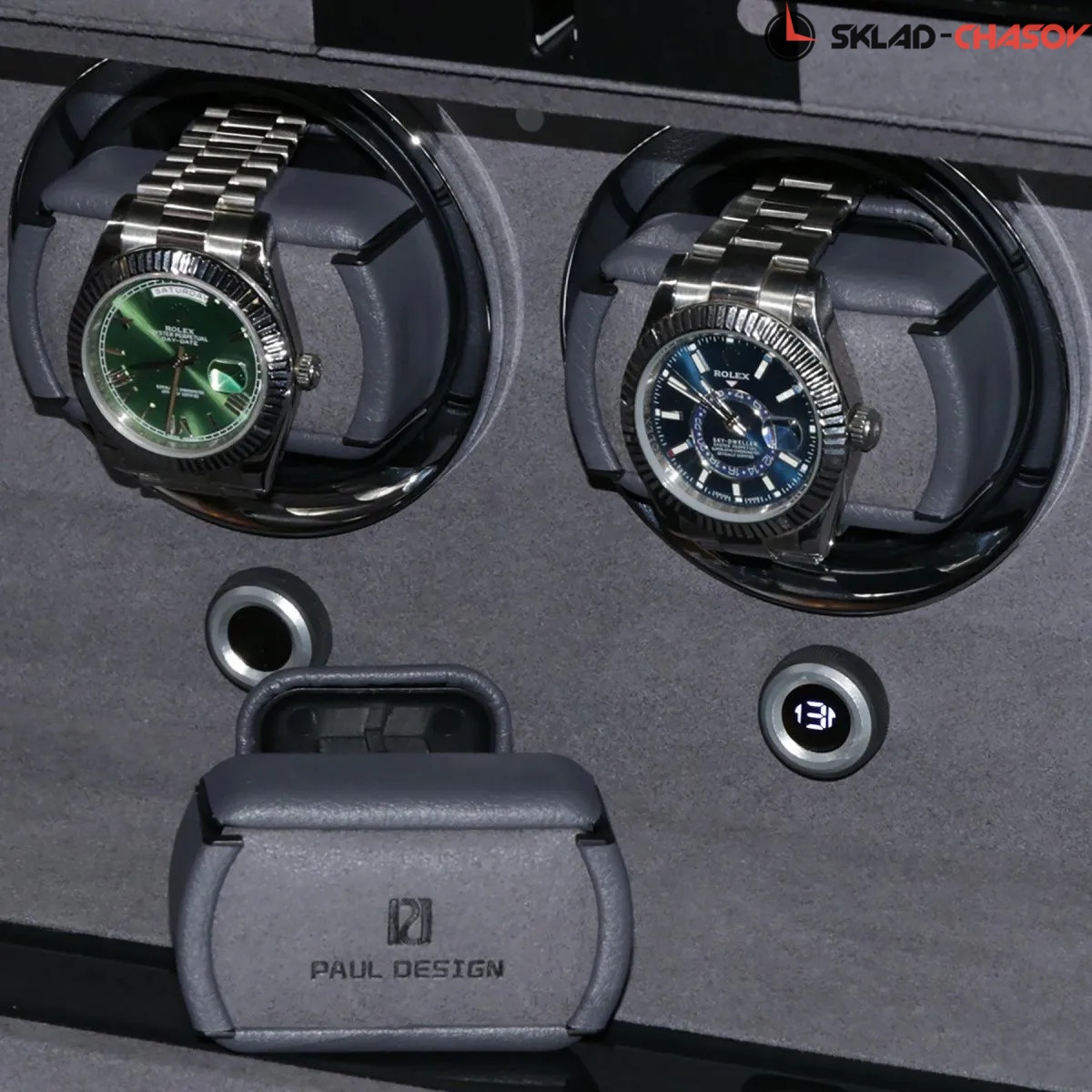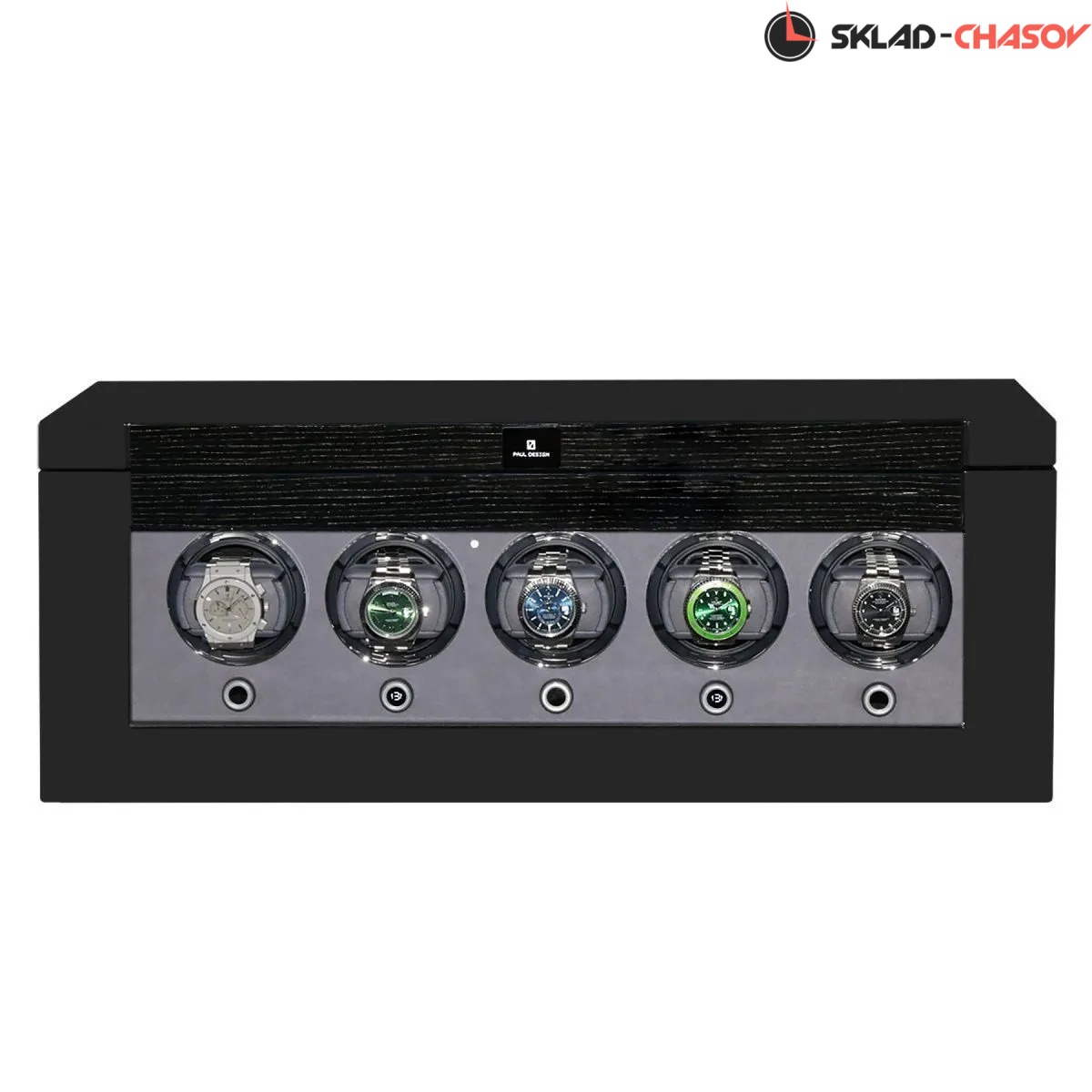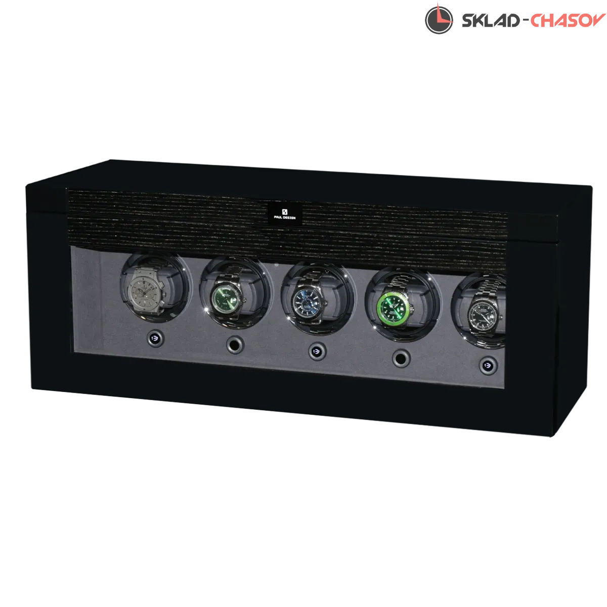 Модель оснащена пятью независимыми ячейками автоподзавода, каждая из которых настраивается индивидуально. Это позволяет подобрать оптимальный режим для часов разных брендов и калибров. Есть возможность настроить как сторону вращения, так и кол-во оборотов, диапазон от 480 до 1950 оборотов в сутки.