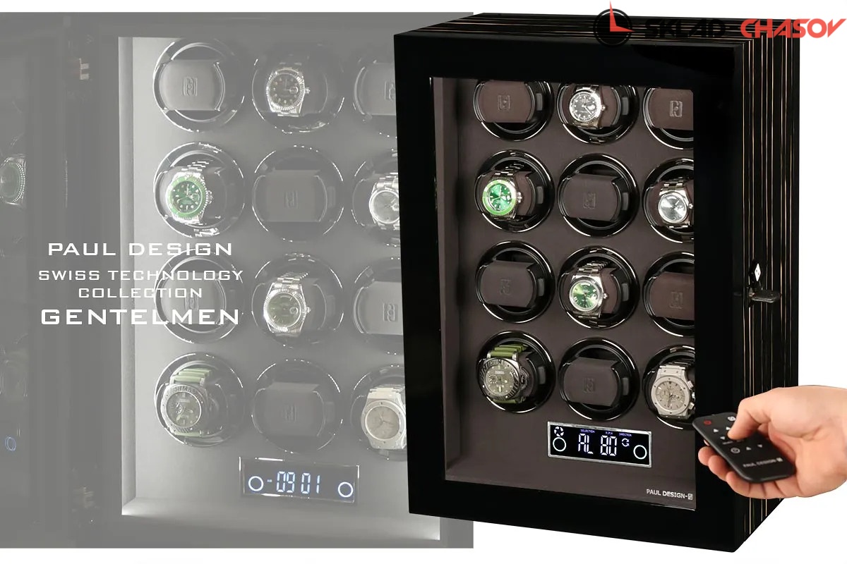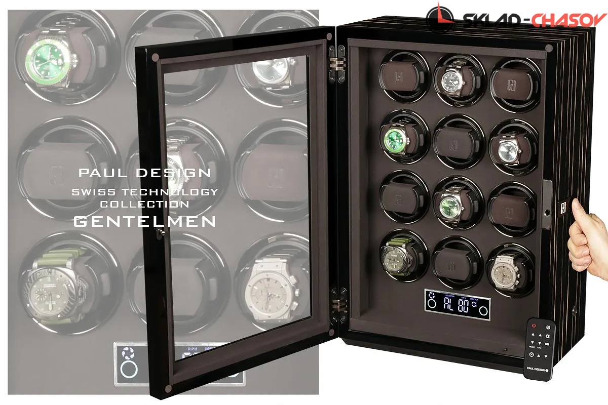 Модель оснащена системой автоподзавода для 12-ти часов с возможностью индивидуальной настройки оборотов и направления вращения каждой ячейки при помощи пульта дистанционного управления. Диапазон от 480 до 1950 оборотов в сутки обеспечивает оптимальный уход за часами любого класса. Телескопические держатели подходят для часов с любой длиной ремешка или браслета, а бесшумные моторы делают использование максимально комфортным. Питание от сети 220 В гарантирует стабильность и долговечность работы.