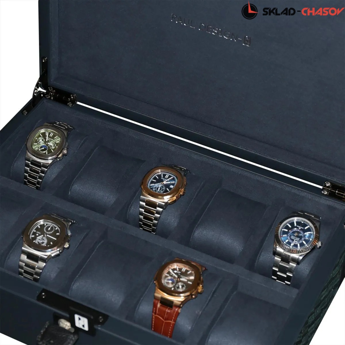 Элегантная и функциональная шкатулка Gentlemen Box 010 L AB от знаменитого бренда PaulDesign станет идеальным решением для коллекционеров. Шкатулка рассчитана на хранение 10 часов. Корпус выполнен из дерева со вставками из синего агата, покрытого многослойным рояльным лаком синего цвета, придавая глубокий глянец. Внутренняя сторона крышки украшена изящной серебристой надписью PAUL DESIGN, подчёркивающей принадлежность к премиальной линии. Интерьер отделан мягким бархатом, в едином гармоничном цветовом решении, который надёжно защищает часы от царапин и внешних воздействий. Универсальные держатели подходят для часов с любой длиной ремешка или браслета, обеспечивая надёжную фиксацию и удобство использования. Для безопасности предусмотрен замок с ключом в кожаной оплётке. Шкатулка поставляется в фирменной подарочной упаковке Paul Design, что делает её не только функциональным аксессуаром, но и достойным подарком для истинного ценителя часового искусства.
