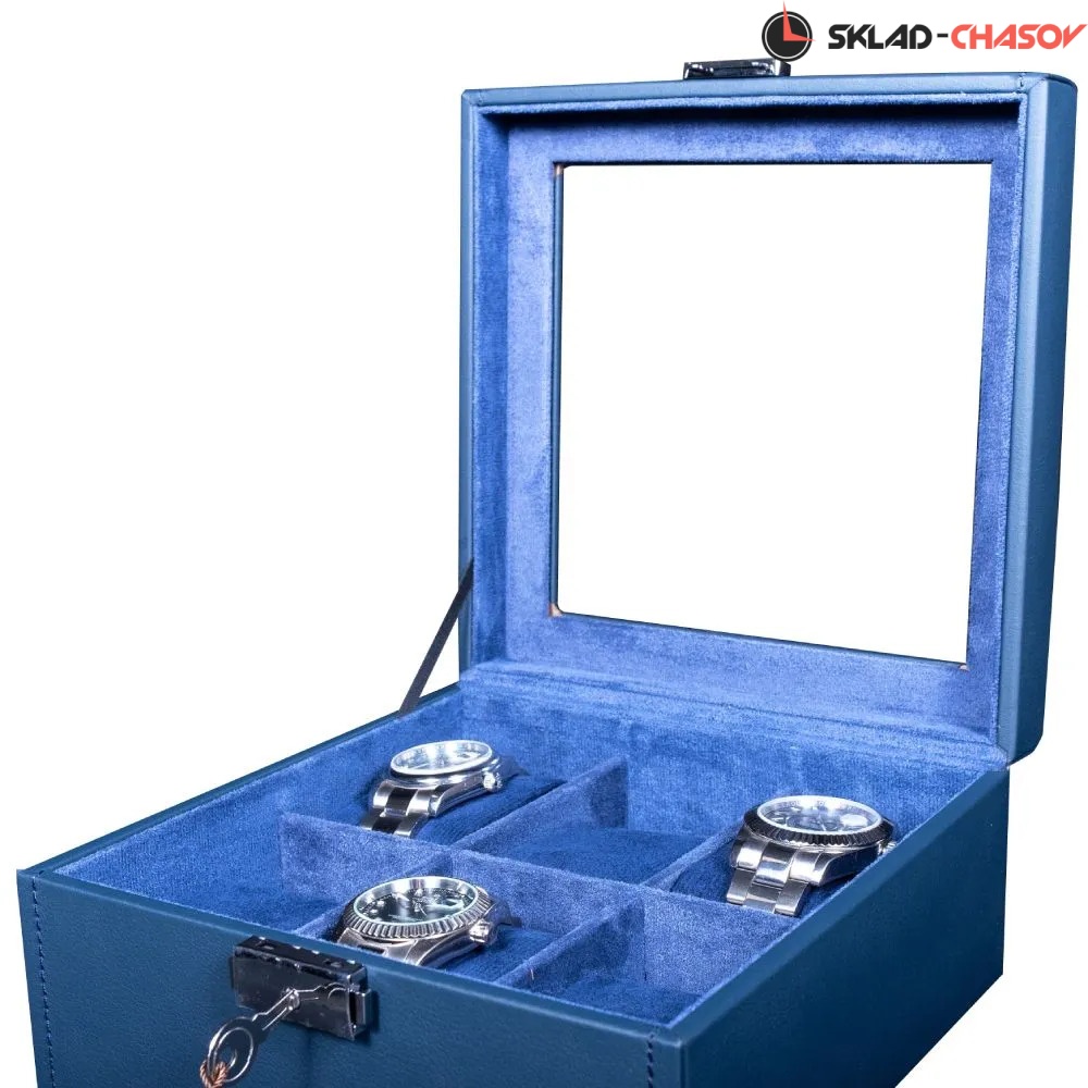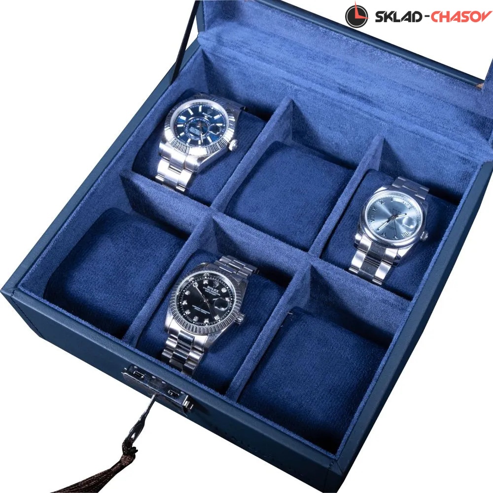В моде всегда были кожаные изделия. Популярность и спрос на них никогда не падал. Изящность этого материала неповторима, а универсальность использования просто поражает. Чтобы воплотить желания клиентов, любящих кожаный корпус у шкатулок, была произведена коллекция Leather. Для ценителей своих наручных аксессуаров мы расположили прозрачное стекло посередине крышки, через которое можно созерцать коллекцию из 10-ти часов. Демонстрируя свои часы через крышку, нужно не забывать про их сохранность. Обеспечить ее позволяет небольшой замочек на торцевой части, закрывающийся на ключ. Исполнение в синей коже является классикой. В дополнении к элегантности шкатулки синий корпус переходит в приятный бархатный интерьер в тон экстерьера. Эргономичные подушки позволят с максимальным комфортом и удобством застегнуть на них часы любых размеров.