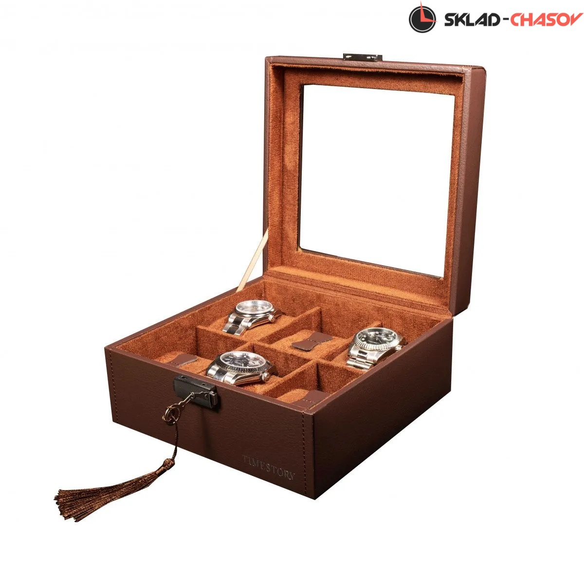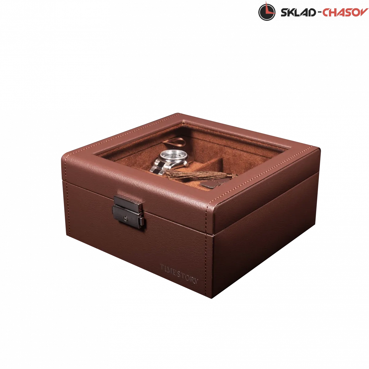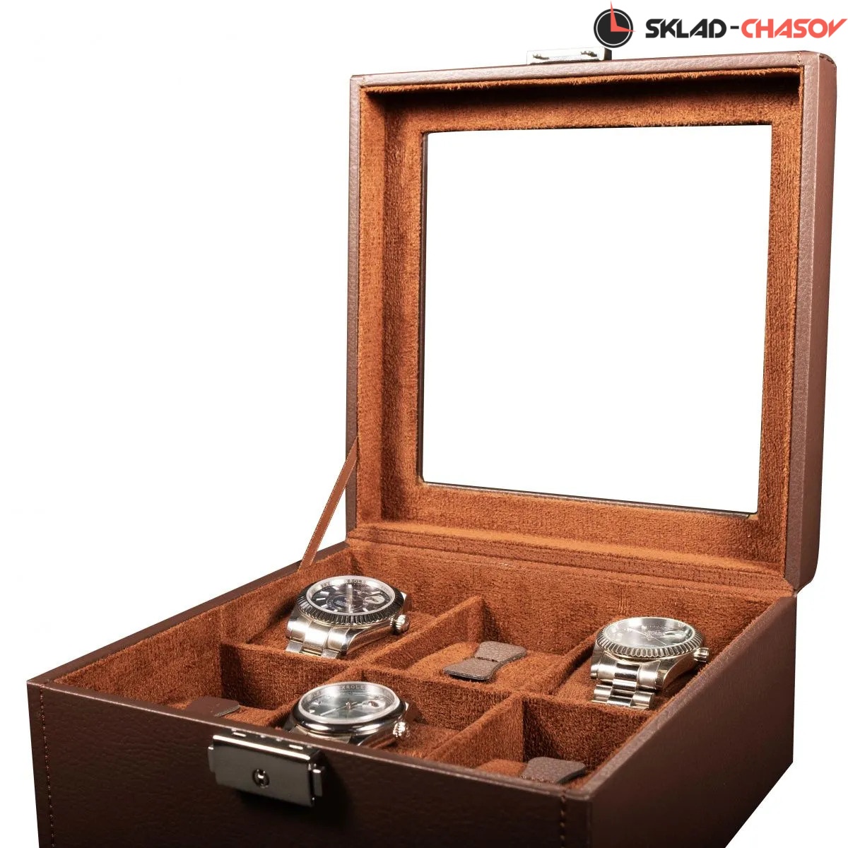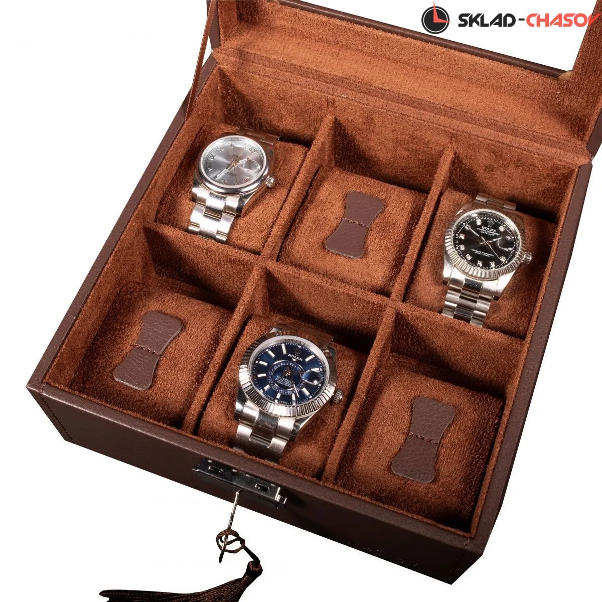 В моде всегда были кожаные изделия. Популярность и спрос на них никогда не падал. Изящность этого материала неповторима, а универсальность использования просто поражает. Чтобы воплотить желания клиентов, любящих кожаный корпус у шкатулок, была произведена коллекция Leather. Для ценителей своих наручных аксессуаров мы расположили прозрачное стекло посередине крышки, через которое можно созерцать коллекцию из 6-ти часов. Демонстрируя свои часы через крышку, нужно не забывать про их сохранность. Обеспечить ее позволяет небольшой замочек на торцевой части, закрывающийся на ключ. Исполнение в коричневой коже является классикой. В дополнении к элегантности шкатулки коричневый корпус переходит в приятный бархатный интерьер коричневого оттенка. Эргономичные подушки позволят с максимальным комфортом и удобством застегнуть на них часы любых размеров.