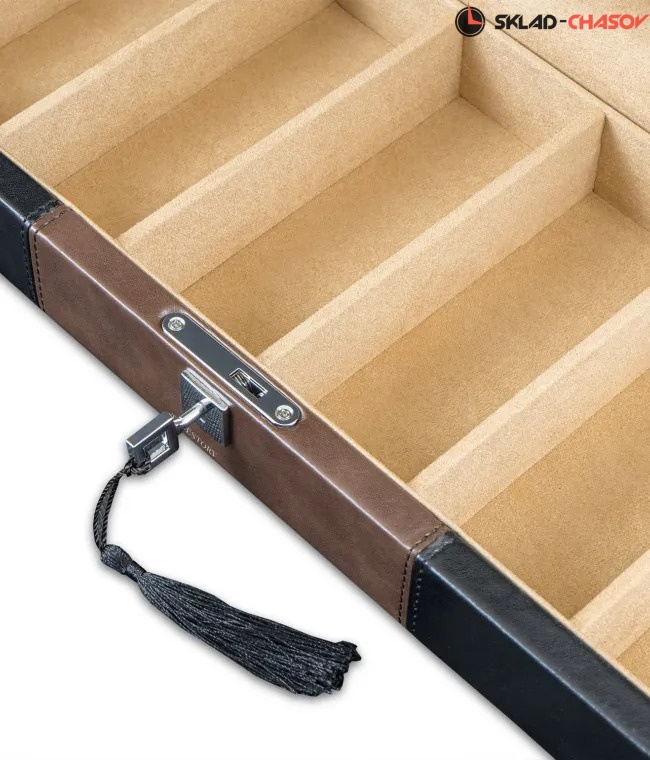 В моде всегда были кожаные изделия. Популярность и спрос на них никогда не падал. Изящность этого материала неповторима, а универсальность использования просто поражает. Чтобы воплотить желания клиентов, любящих кожаный корпус у шкатулок, была произведена коллекция Leather. Открывая крышку шкатулки легким движением руки, можно созерцать коллекцию из 6-ти любимых очков. Исполнение в черной и коричневой коже является классикой. В дополнении к элегантности шкатулки черный корпус переходит в приятный бархатный интерьер бежевого оттенка.