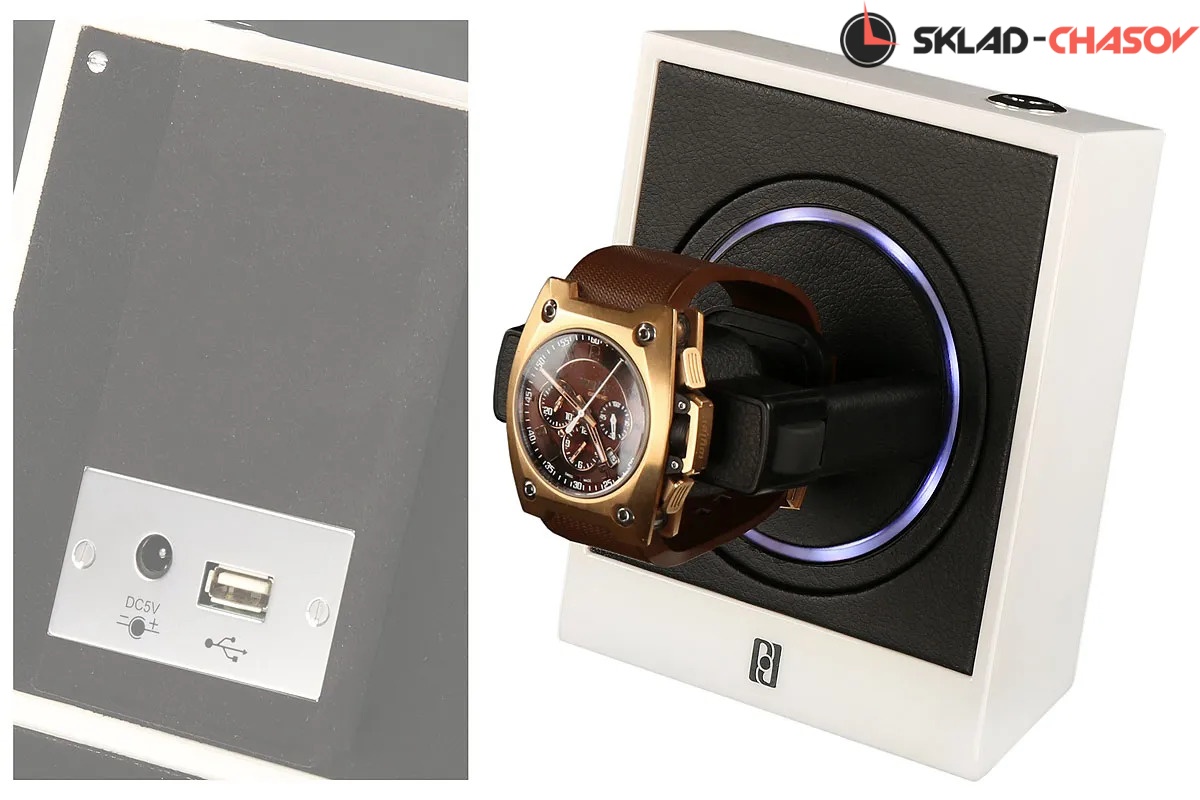 Модель OPTIMA W - интересная новинка, достаточно продвинутая модель с профессиональными настройками. Основное преимущество - эффектная подсветка держателя часов, показывающая детали процесса: направление вращения и количество оборотов. Совершенно новое, интересное решение в мире Автоматического Завода Часов. Корпус изготавливается из натурального белого дерева, также используется кожа, микрофибра и металл. Преимущества модели: - светодиодная подсветка, - телескопический инновационный держатель для больших, средних и малых часов, - вход USB, - возможность подключения других шкатулок и/или других зарядных устройств к одному источнику питания. Фирменная подарочная коробка от PD.