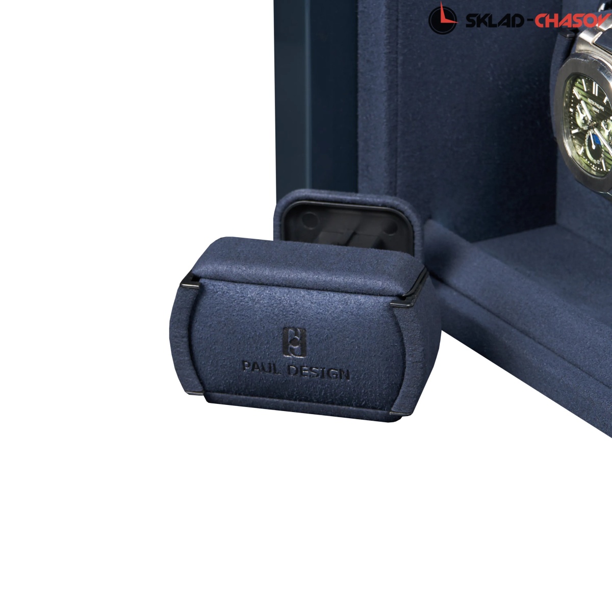 Шкатулка Othello 3 AB для автоподзавода 3-х часов с дополнительным хранением сочетает в себе инновационный дизайн и безупречную функциональность. Экстерьер выполнен из дерева со вставками из синего агата и покрыт рояльным лаком насыщенного синего цвета. В интерьере используется мягкий бархат в едином гармоничном цветовом решении. 3 серебристых безеля элегантно обрамляют ячейки автоподзавода.